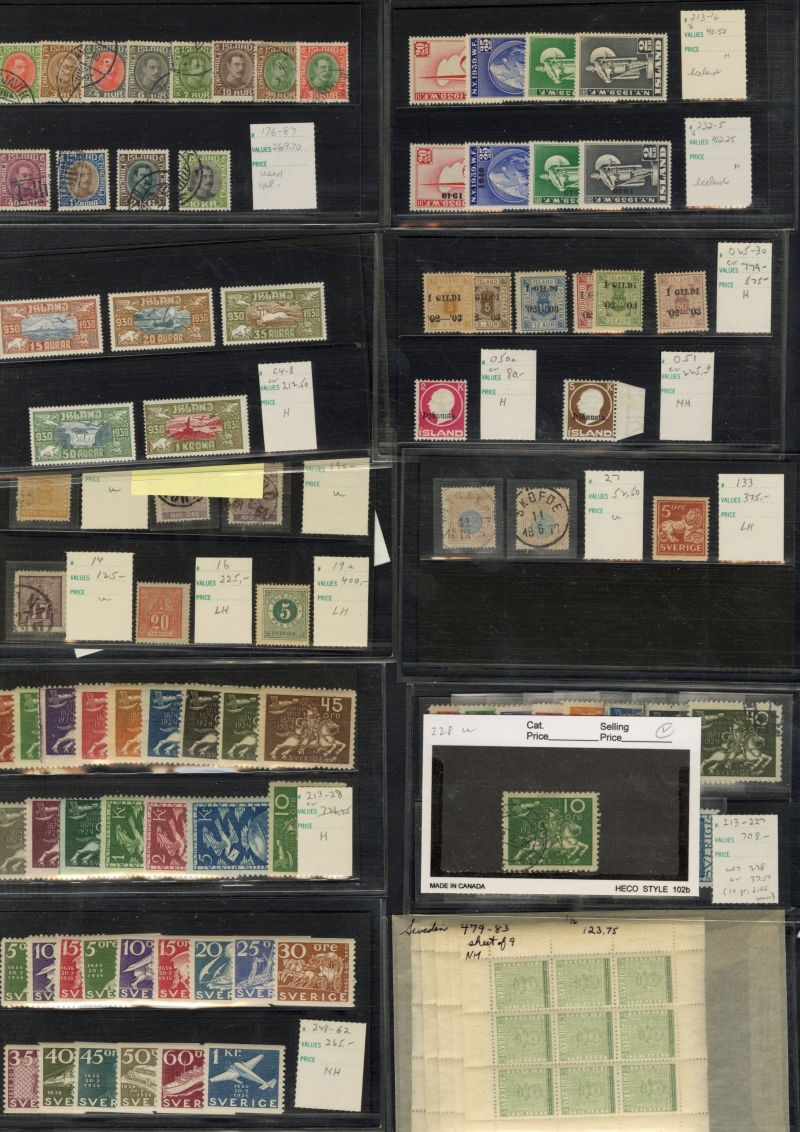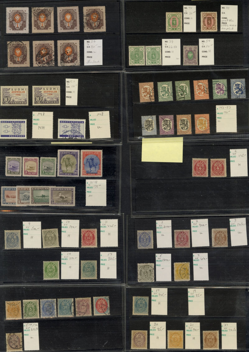 1477 O, og   imageLARGE LOTS AND COLLECTIONS SCANDINAVIA 1851 small dealers' stock on cards, used or unused, with Denmark including 1851 2rs (2) and 4rs (10), nice selection of 1854-63 Issues, 5k General Post Office; Finland with Coat of Arms, Russian Empire, Air Post C1 (2), etc.; Greenland with first set to 5k (2); Iceland with early singles, Two Kings, Christian to 5k, Surcharges, Parliament, World's Fair, Air Post, Officials, etc.; Sweden including no.4 with Royal certificate, UPU, Semi-Postals, etc., mixed condition with some faults possible (mostly among early issues), otherwise fine-v.f. (Image) (Image 2) (Image 3) (Image 4) (Image 5) (All Images)