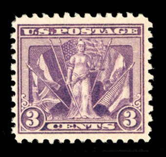 States 1917-29 Issues (537a) 1919 3c deep red violet, n.h., well centered for this notoriously difficult stamp, with the design clear of the perforations on all sides, beautiful color, a fresh and nearly v.f. example of this rare shade, with 2017 PFC
