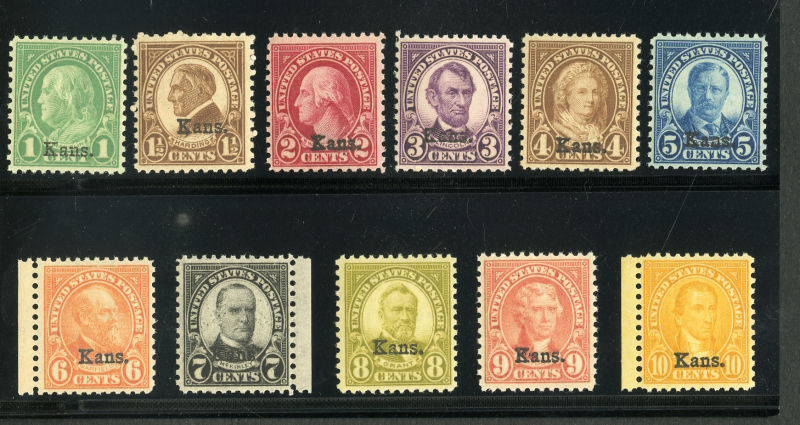 States 1917-29 Issues (658-668) 1929 Kansas, 1c-10c, complete set, n.h., fine-v.f., cat. Value $431 (Image)