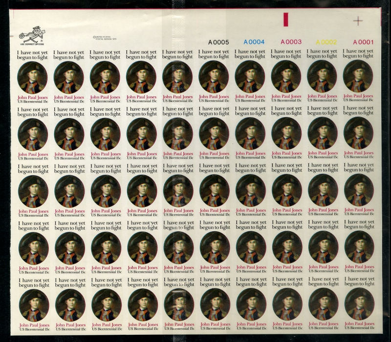 States Modern Issues (1789P) 1979 15c John Paul Jones, printers' waste, imperf. sheet of 50, n.h., v.f. (Image)