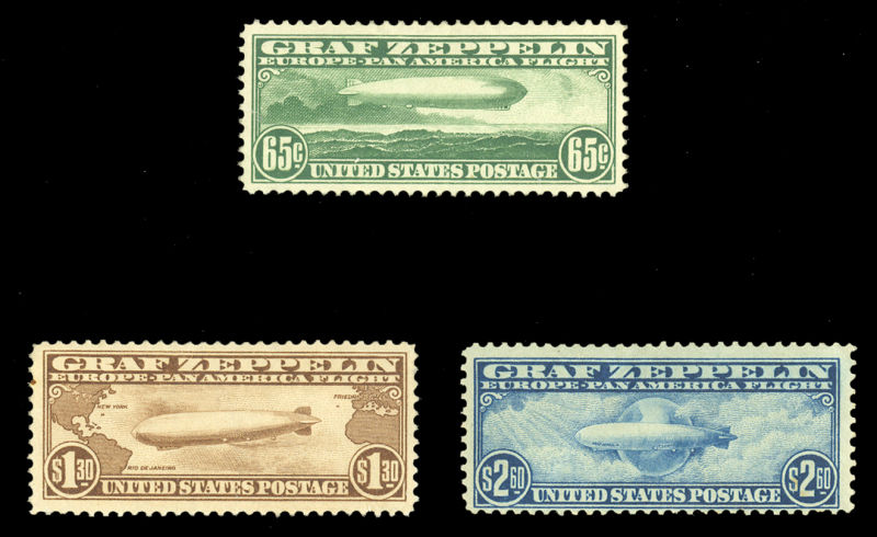 States - Air Post (C13-15) 1930 Zeppelin 65c-$2.60 set of three, l.h., fine-v.f., cat. Value $1060 (Image)