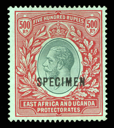 COMMONWEALTH EAST AFRICA & UGANDA (59S) 1912-18 George V, 500r red and green, overprinted Specimen, h.r., v.f., cat. value $1750 (Image)