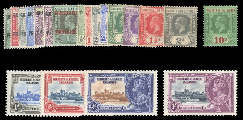 COMMONWEALTH GILBERT & ELLICE ISLANDS (1-11,27-36) 1911-35 selection with 1911 overprints, etc., 1922-27 set to 10sh and Silver Jubilee, n.h., fine-v.f. (SG £427 for hinged)