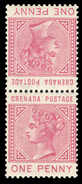 COMMONWEALTH GRENADA 1883 1d carmine, vertical tete-beche pair, n.h., fresh and fine (SG31a, £350 as hinged) (Image)