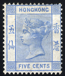 COMMONWEALTH HONG KONG (11) 1880 Victoria, 5c ultramarine, bright color, h.r., fine, cat. value $950 (Image)