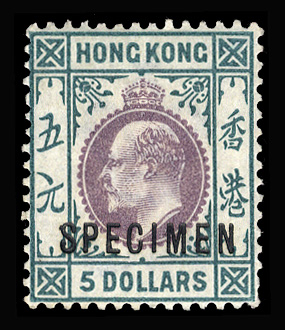 COMMONWEALTH HONG KONG (84S) 1903 $5 blue green and lilac, overprinted Specimen in black, l.h., fine (Image)