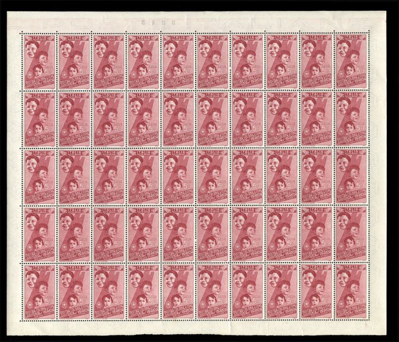 (367-76,C89-94) 1937 Children, Postage and Air Post Issue, 50 complete sets, mostly in sheets or large multiples, n.h., fine-v.f. (Sass.406-15,A100-105, Euro 45,000) cat. value $32750 (Image)