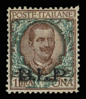 Semi-Postals (B16) 1923 "BLP" overprinted in black, 1 Lire brown & green, h.r., perfectly centered for issue, signed E.Diena (Sass.12, Euro 11,000) cat. value $3250