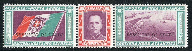 Post Officials(CO1var) 1933 Servizio di Stato triptych, complete "E" watermark, n.h., v.f., with 2021 Dr.Avi certificate (Sass.1a) (Image)