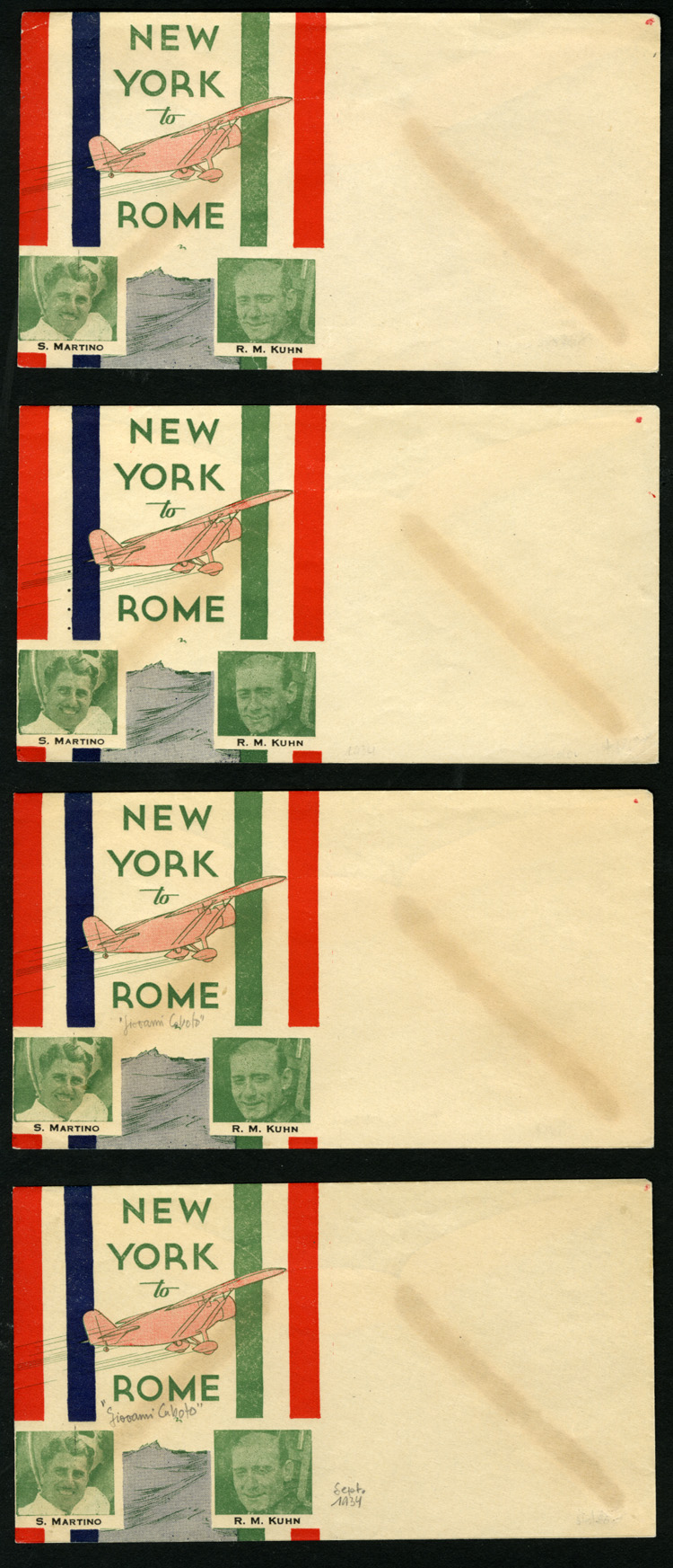 Flight Covers 1934 Martino & Kuhn intended flight New York to Rome, four unaddressed, specially prepared covers, fine-v.f. (Image)