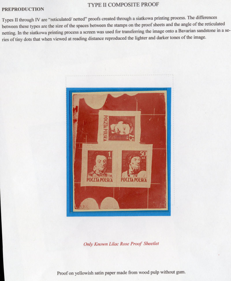 (341-43P) 1944 Type II (Siatkowe), composite sheetlet in lilac rose, printed on yellowish satin paper (made from wood pulp), v.f., signed Piekarz, with 2009 Korszen certificate... (Image)