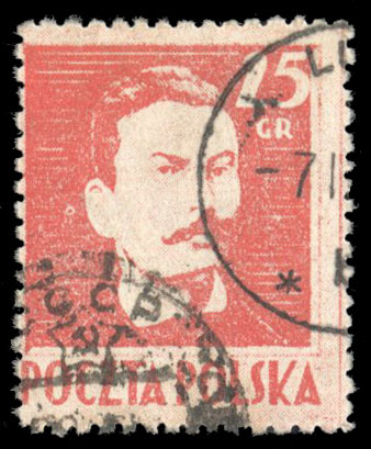 (341) 1944 25gr red, canceled "Lublin" and Soviet (C.C.P.) arrival, indicating that this stamp was on cover which went through the USSR postal system, fine, signed Schmutz