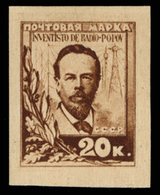 1925 Popov, 20k red brown, unissued value, imperforate proof on factory paper, v.f. (Image)