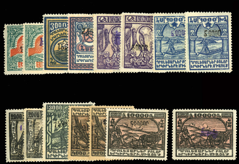 (311/333) 1922 surcharges in black or violet, 15 different, h.r., fine-v.f., scarce group (Image)