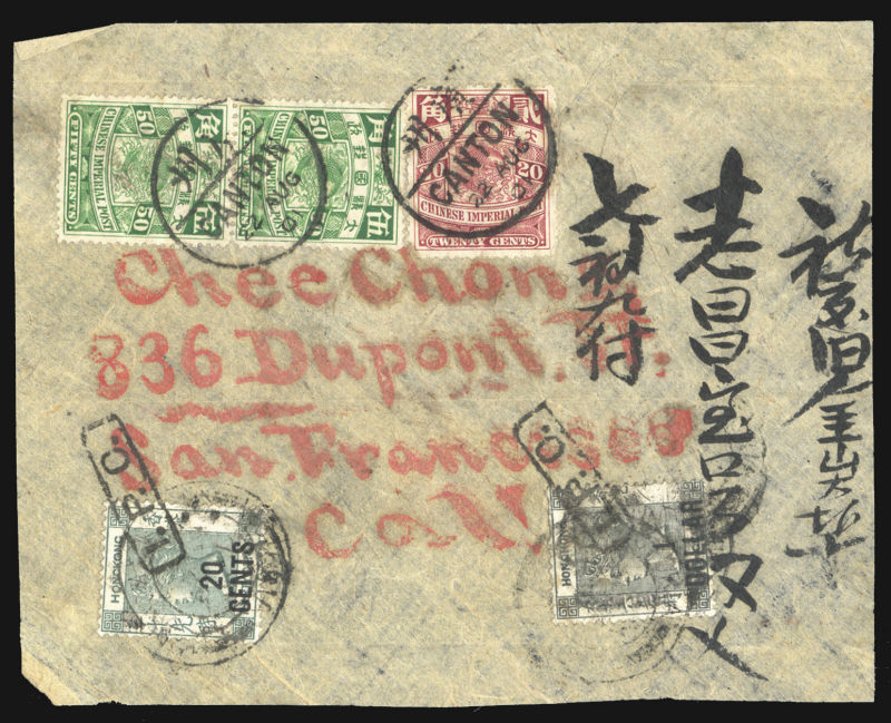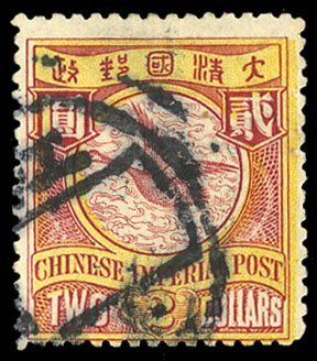 Chinkiang, with 2 Nov arrival pmk on back, filing fold away from the stamp, cover carelessly opened on back, otherwise fine and extremely rare genuine Foochow bisect (used for only three days, very few genuine examples recorded) cat. value $1500 (Image)