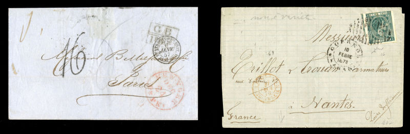 (1,4) 1863 (21 Mar) FL from "Dr. Pena, Pharmaceutico" in Medellin to New York, franked with 2 1/2c olive and 10c brown, the former with margins all around, the latter cut in at right, three large margins, including portion of adjoining stamp at