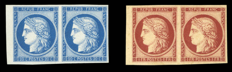 canceled by "R.de Luxembourg" 2 June 1876 cds, sent to Lyon, with transit and arrival markings, part of addressee's name erased, otherwise fine, the pair of 5fr in exceptional quality, signed Calves, with 1988 Diena certificate (YT 33, Euro 3,750+) (Image)