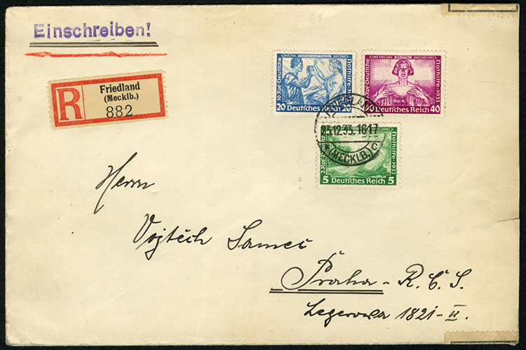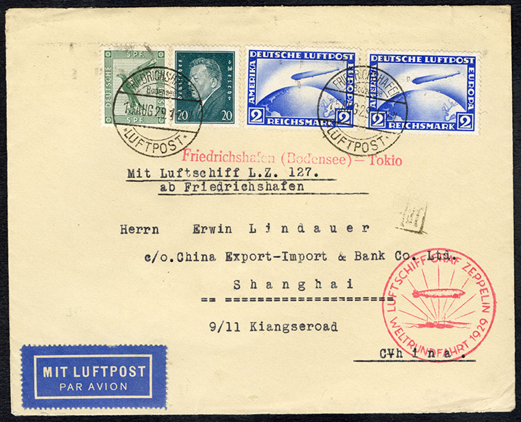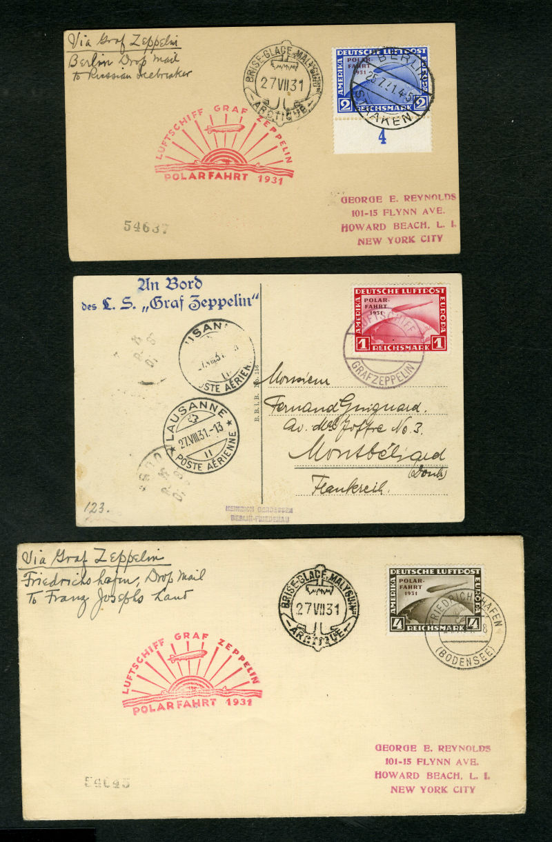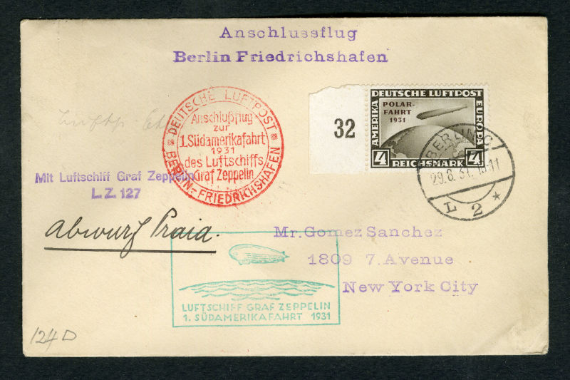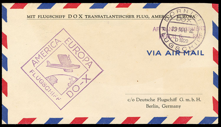 Dornier Do-X Flights 1932 (19 May) return flight of the DOX cover with on-board cancelation, violet "America-Europa Flugschiff DO-X" cachet, with preprinted address and Berlin 27.5.32 arrival, v.f., with period newspaper clippings tracing the