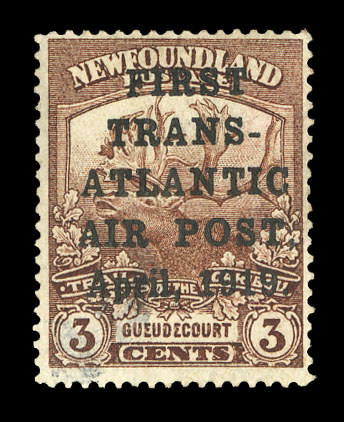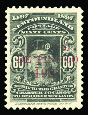 COMMONWEALTH CANADIAN PROVINCES - Newfoundland Air Post (C4) 1927 60c black, red De Pinedo overprint, h.r., well centered, signed "JAR" (J.A.Robinson, Postmaster General), etc., v.f., with 1960 Philatelic Foundation Certificate. This stamp was