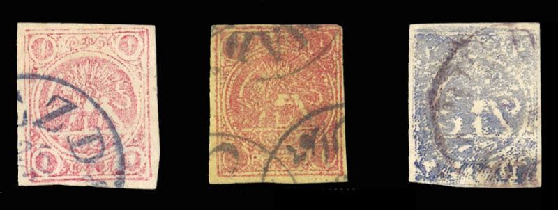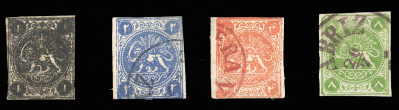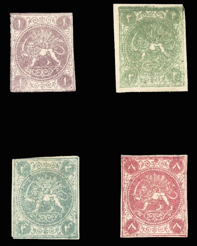 (1-4) 1870 1s dull violet, 2s green, 4s greenish blue, 8s red, set of four, unused with or without gum, various types, usual margins, mostly all around, 1s type IV on medium (0,07mm) paper, fine-v.f., signed Sadri, with his 2022 card certificates,