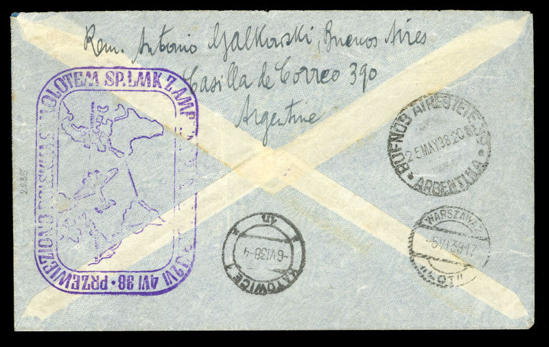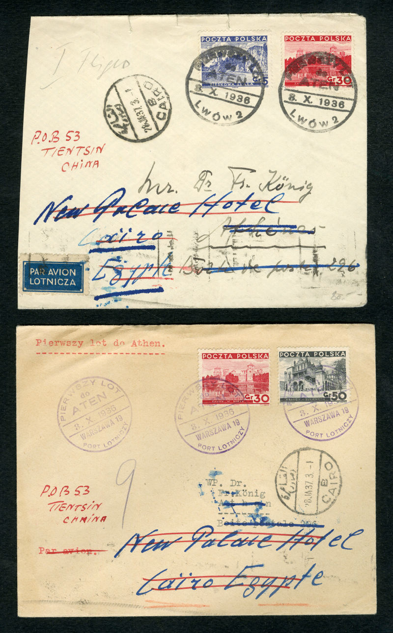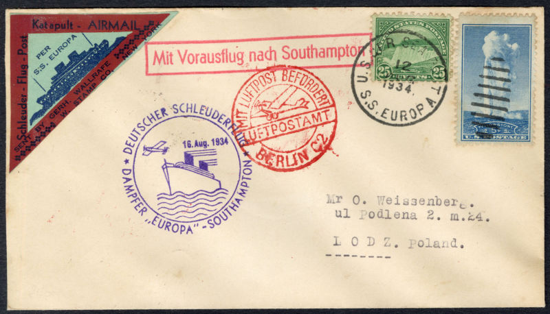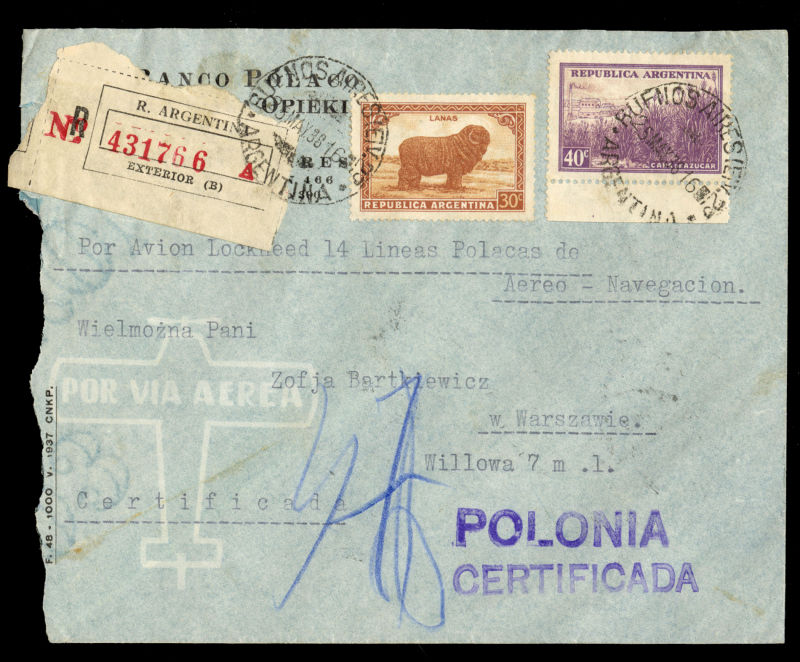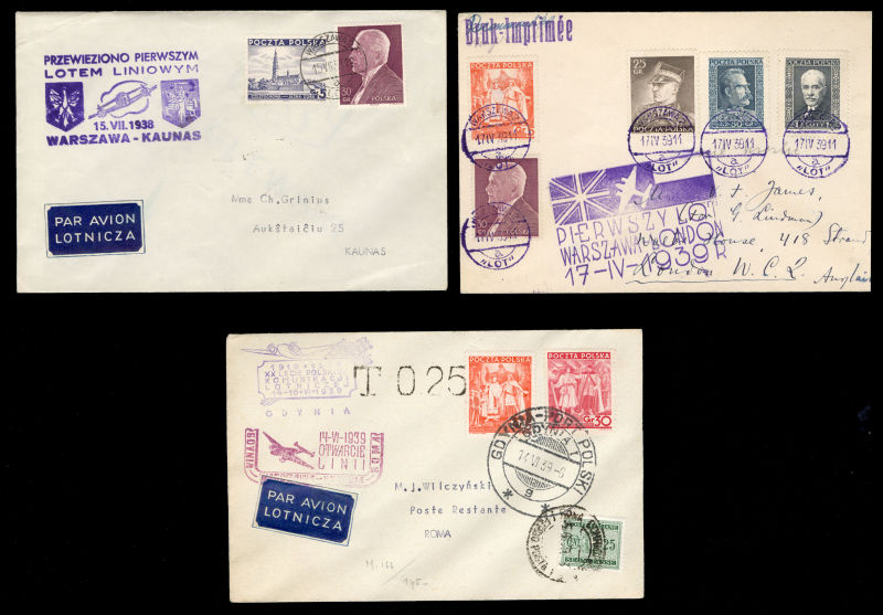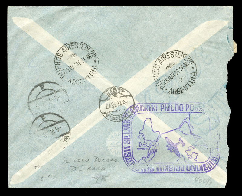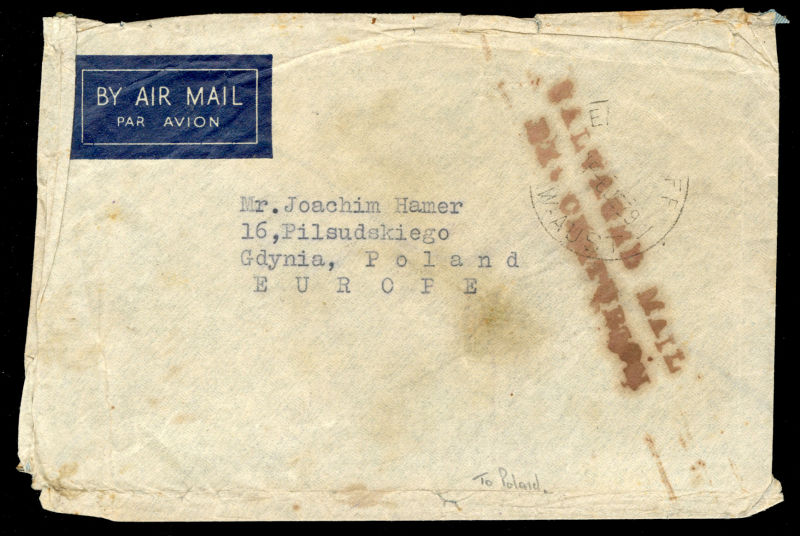 POLAND Flight Covers (Fi.151) 1939 (June) cover from Sydney, Australia to Gdynia, with "Salvaged Mail Ex-Centurion" hs on front, German resealing label and "Durchnasst Calcutta engeganget" (soaked through in Calcutta), Munich 22.6.39
