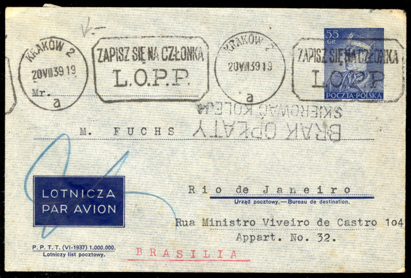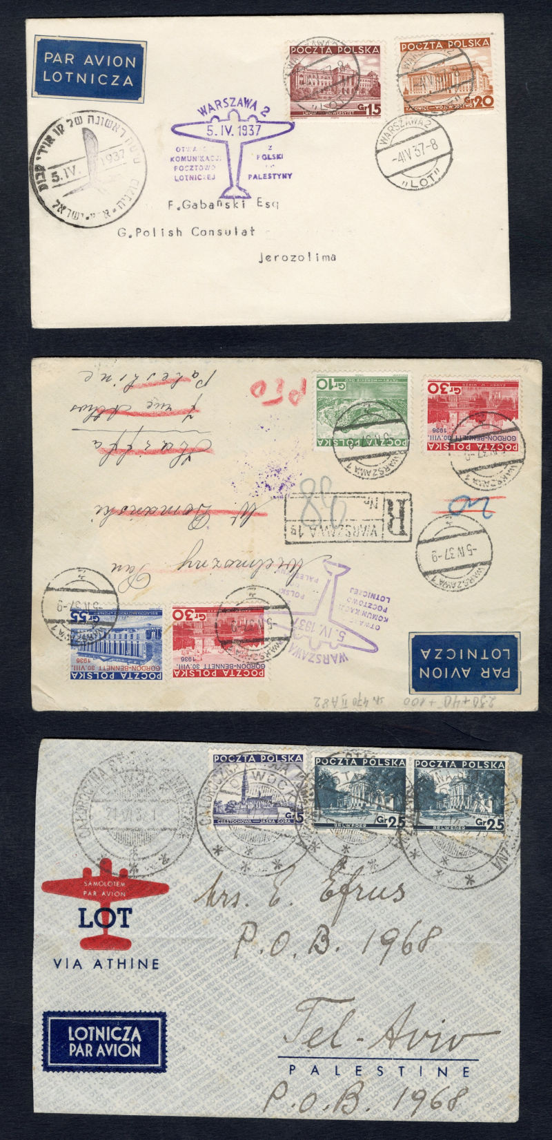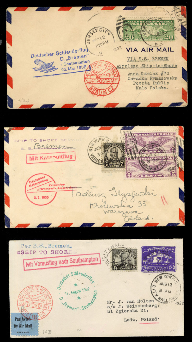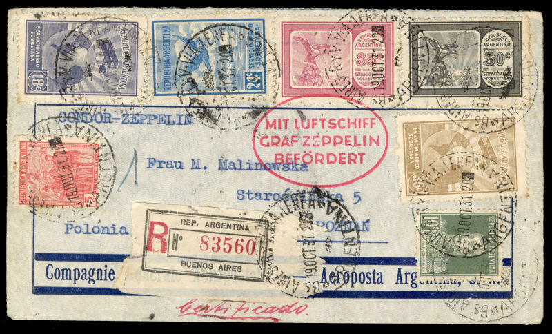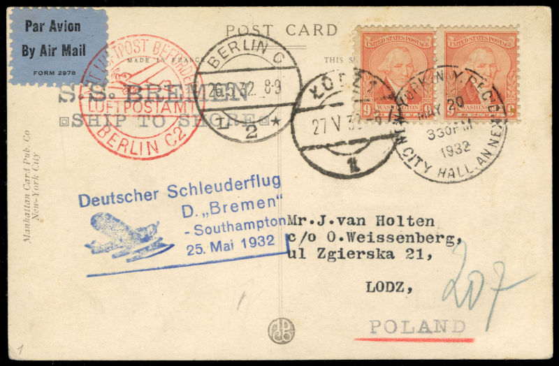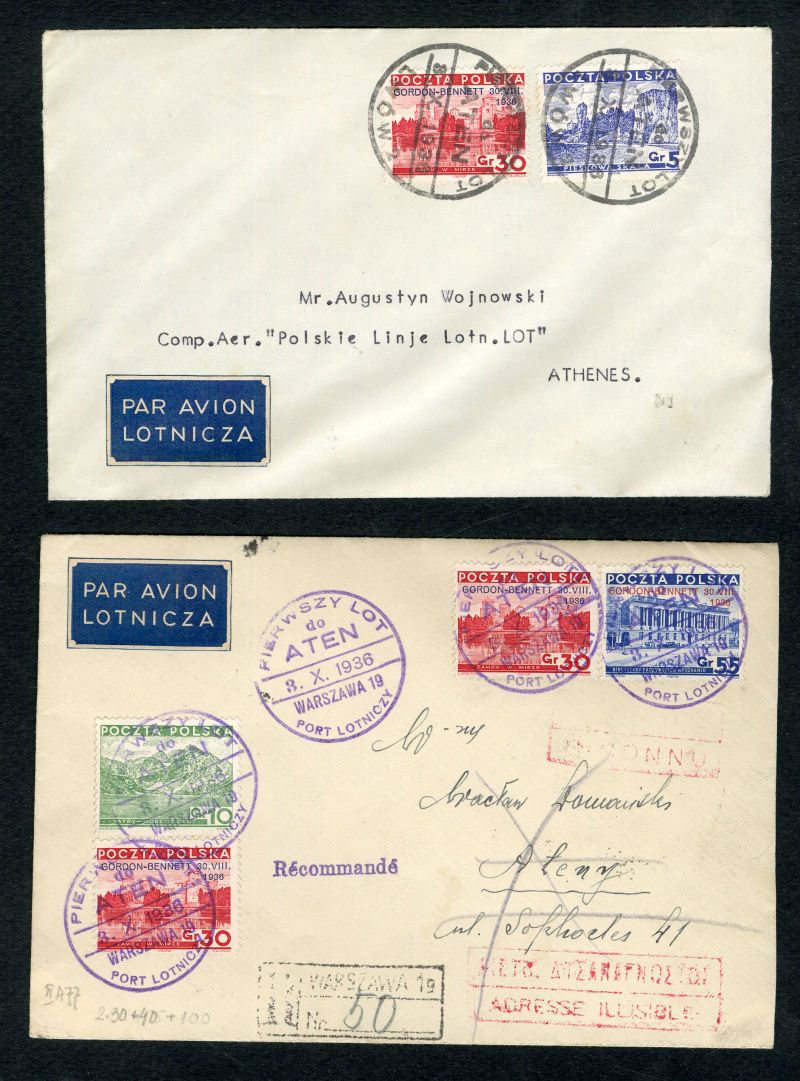 POLAND Flight Covers (Fi.151) 1939 (June) cover from Sydney, Australia to Gdynia, with "Salvaged Mail Ex-Centurion" hs on front, German resealing label and "Durchnasst Calcutta engeganget" (soaked through in Calcutta), Munich 22.6.39