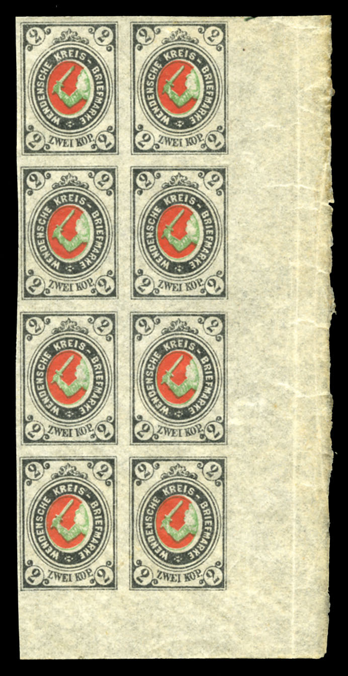 RUSSIA Wenden 1868 (1 June) FL franked with 2kop carmine & green, large margins all around, canceled by pen and used in combination with Russia 1k, 3k and 10k (horizontally laid paper) tied by "Wenden 1 June 1868" departure pmks, sent via