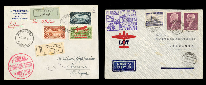 Mass., with transit and arrival pmks, fine-v.f., rare Monaco-Switzerland and Germany-Switzerland connecting flights (Image)