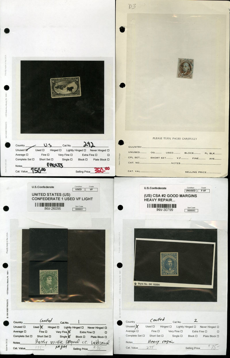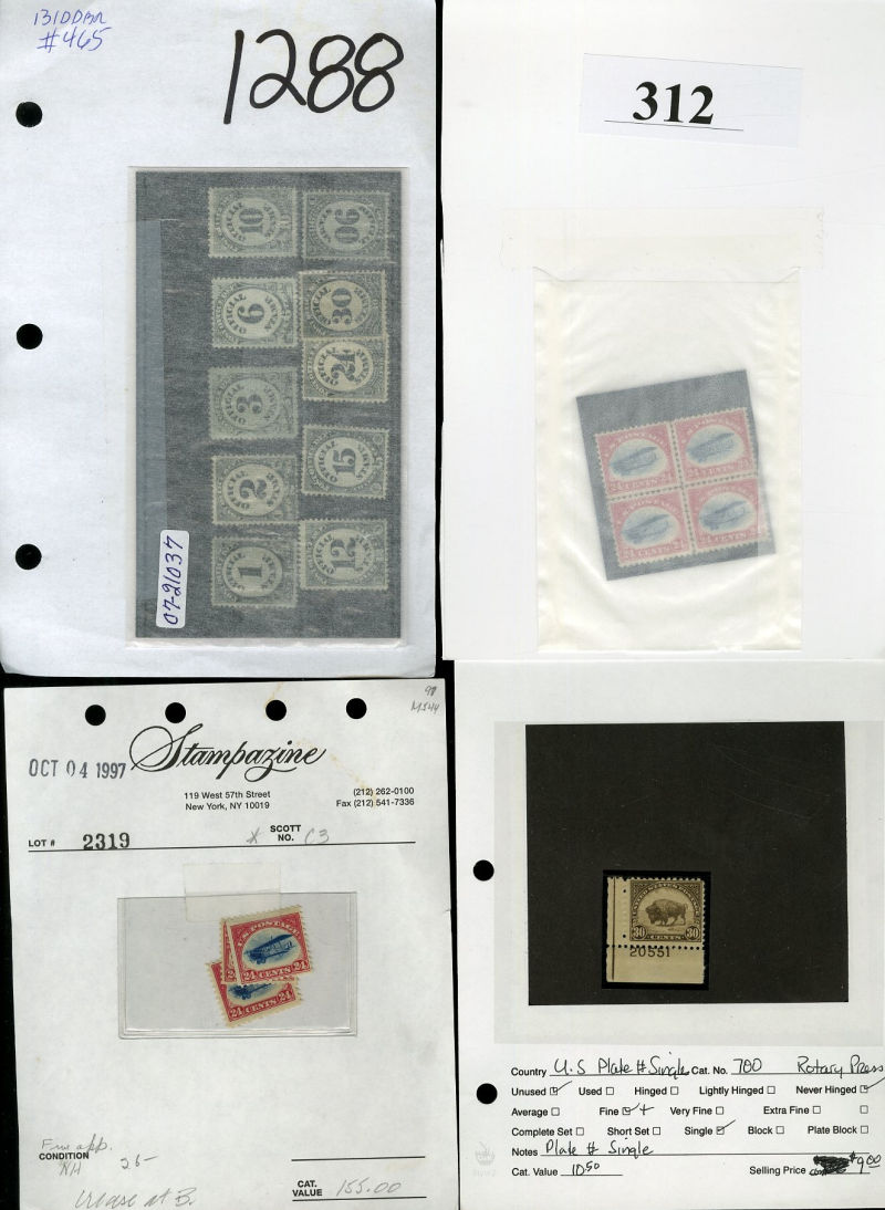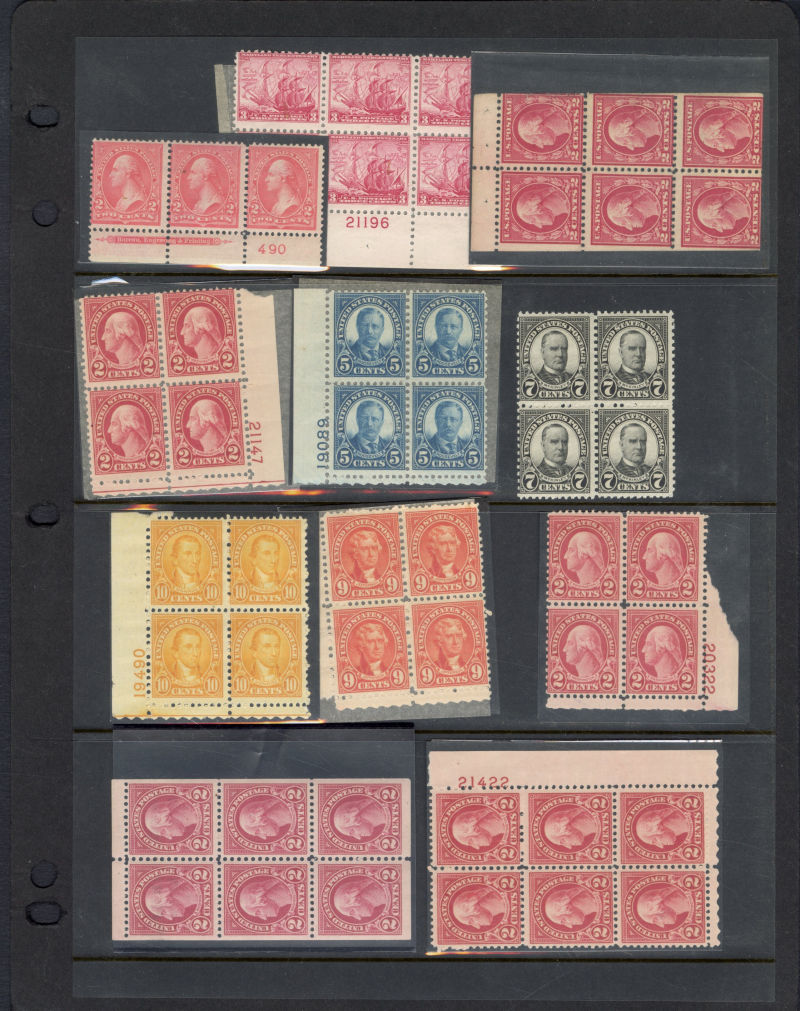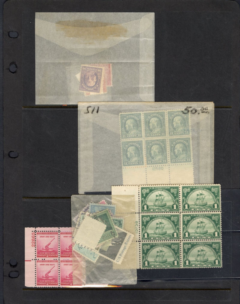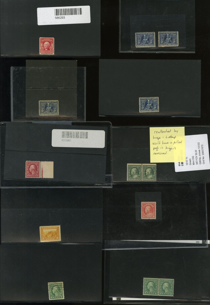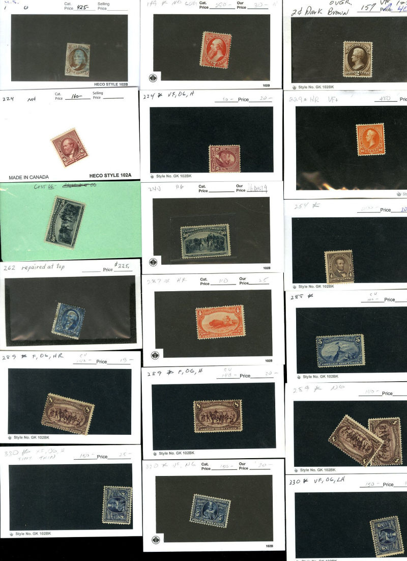 LOTS AND COLLECTIONS UNITED STATES 1847-1930 balance of a consignment, with No.1 (coverfront), 1857 5c red brown, dark brown, 24c, Bank Note Issues, proofs, Essays, Columbians, with 15c (12), 50c-$3, $5, 10c Plate No. Block, Regular Issues with $2