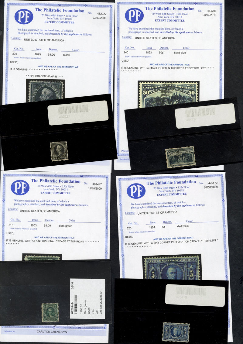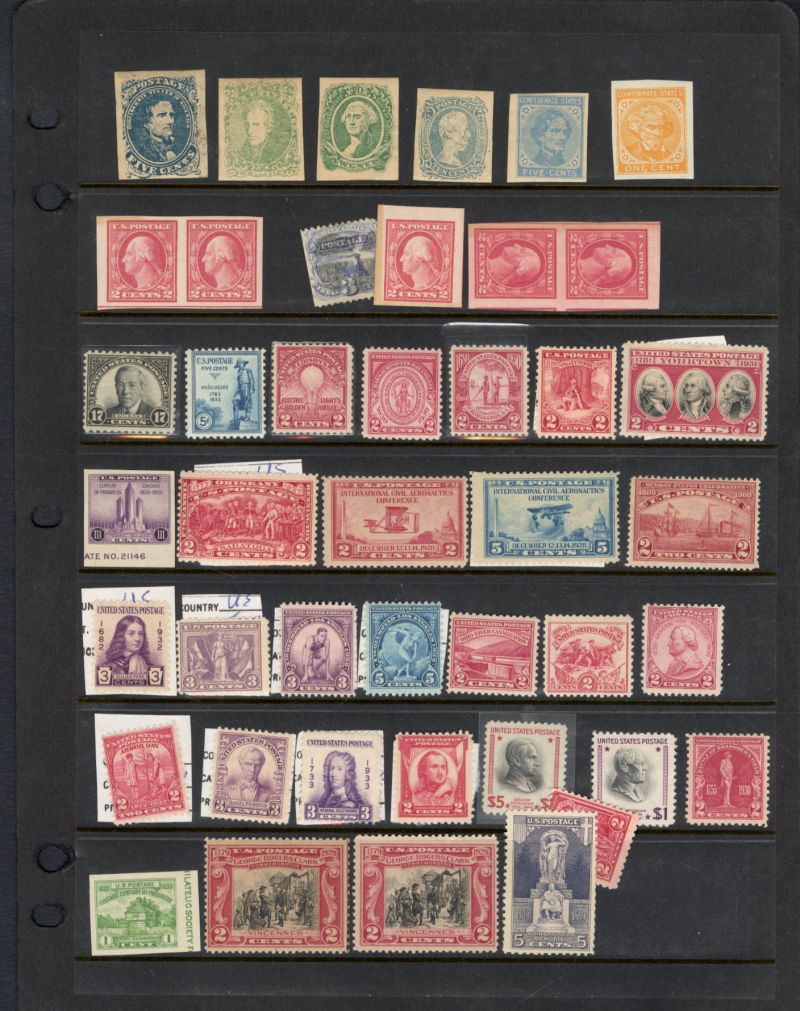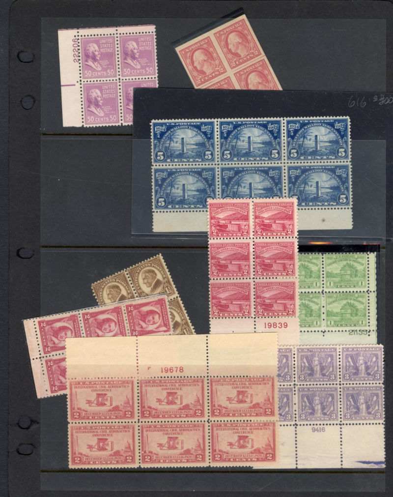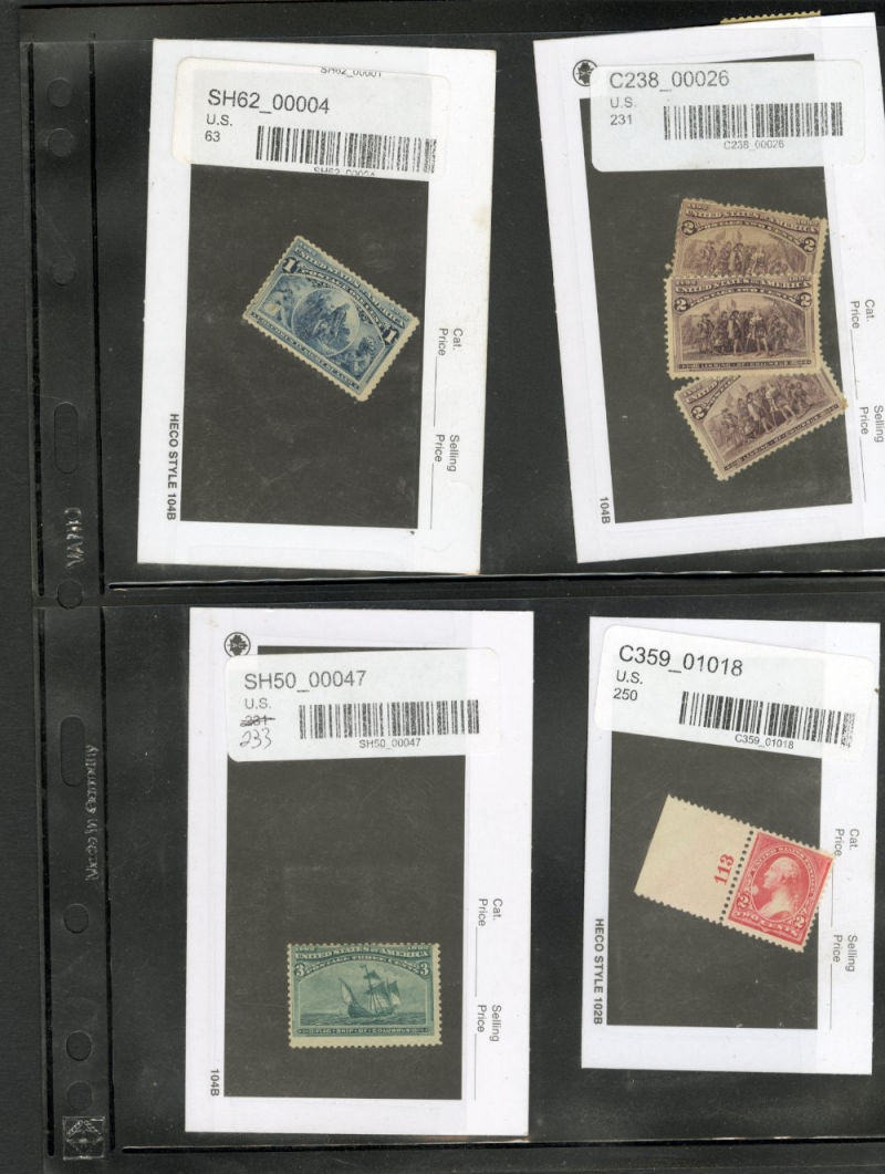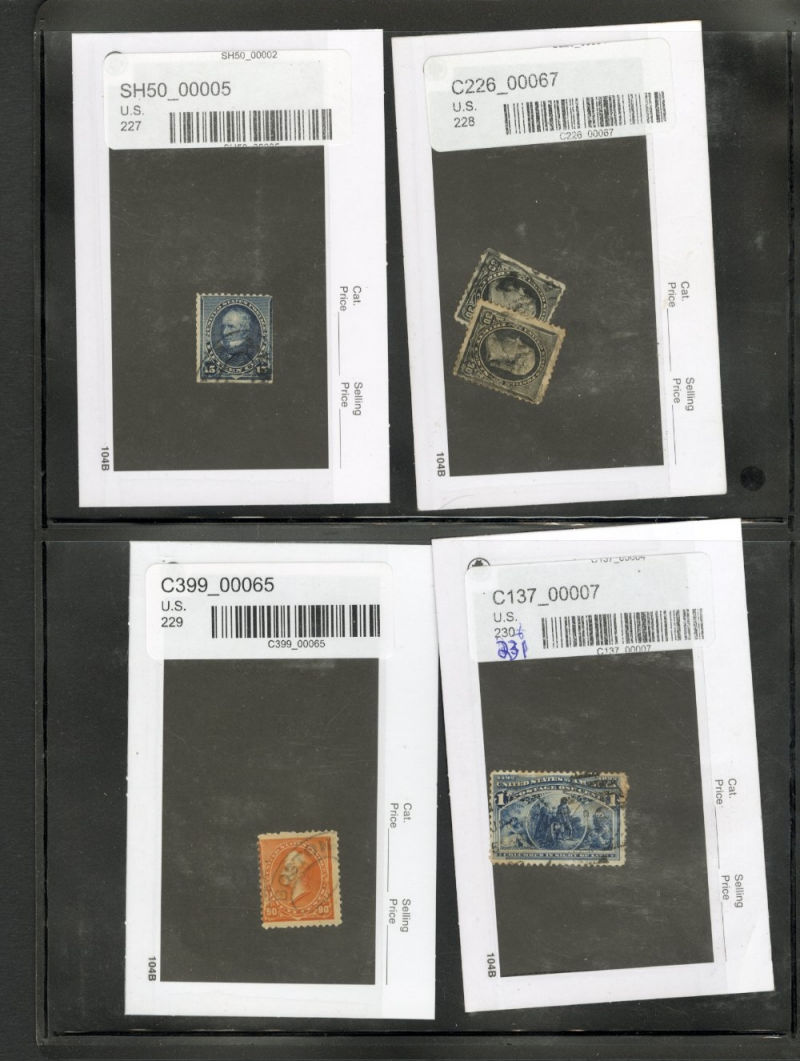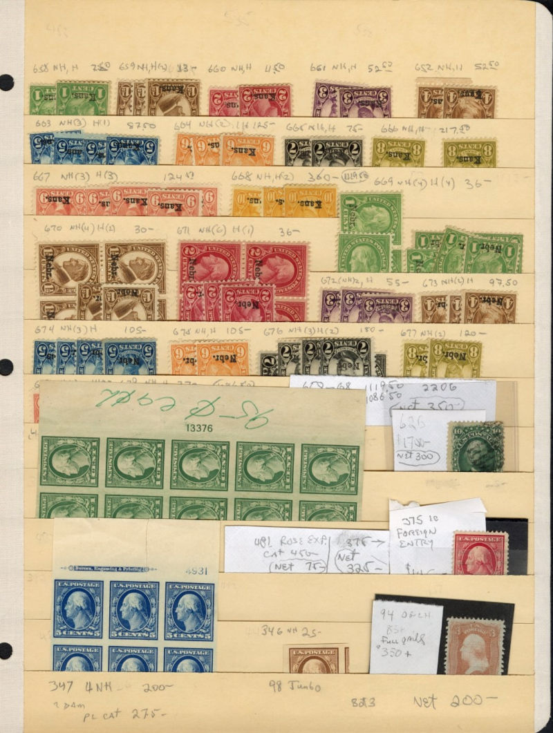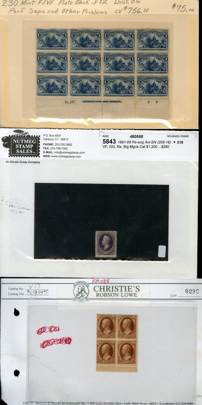 LOTS AND COLLECTIONS UNITED STATES 1847-1930 balance of a consignment, with No.1 (coverfront), 1857 5c red brown, dark brown, 24c, Bank Note Issues, proofs, Essays, Columbians, with 15c (12), 50c-$3, $5, 10c Plate No. Block, Regular Issues with $2