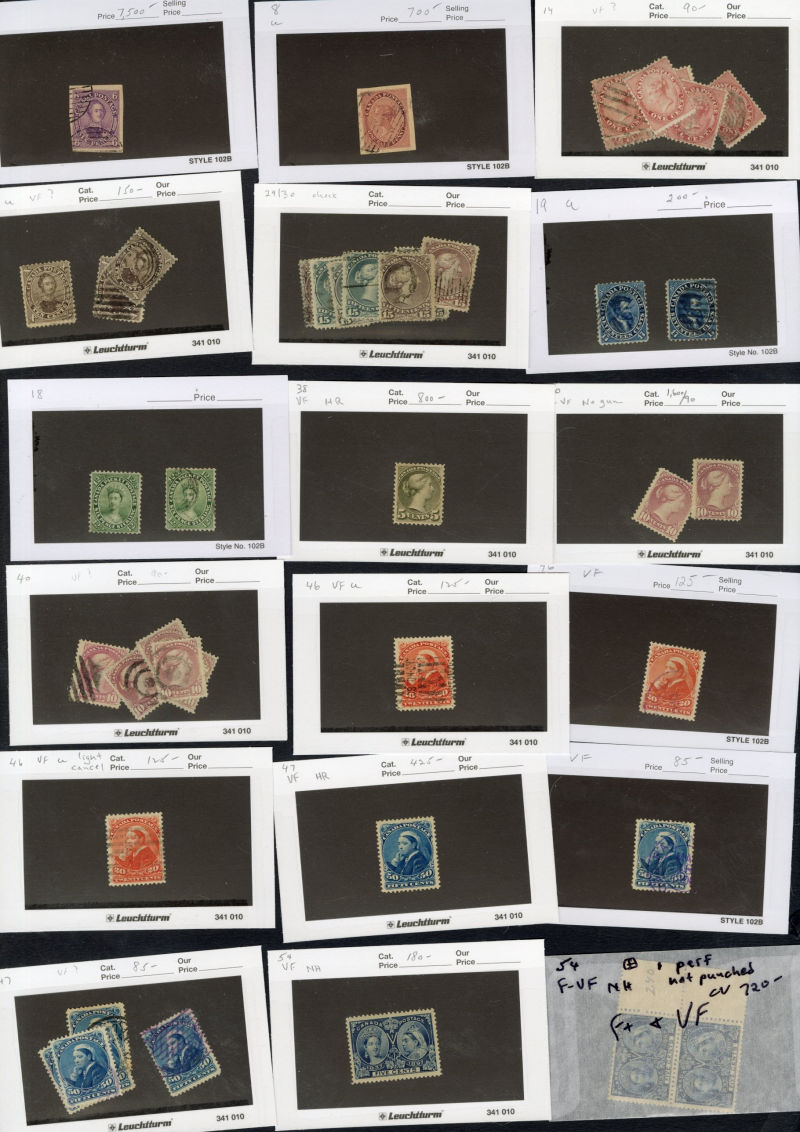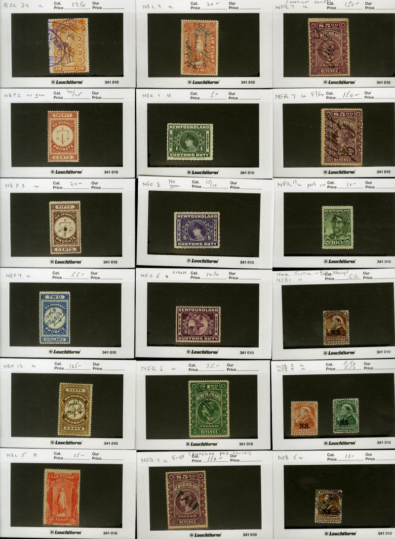 albums with scattered early issues, sets from the 1930s, few modern sheets, FDCs, Canadian Provinces, PEI including Scott No.2 (thin, with Greene Foundation certificate), New Brunswick, Nova Scotia, Newfoundland Nos 55 and 59 (both n.h. with Greene