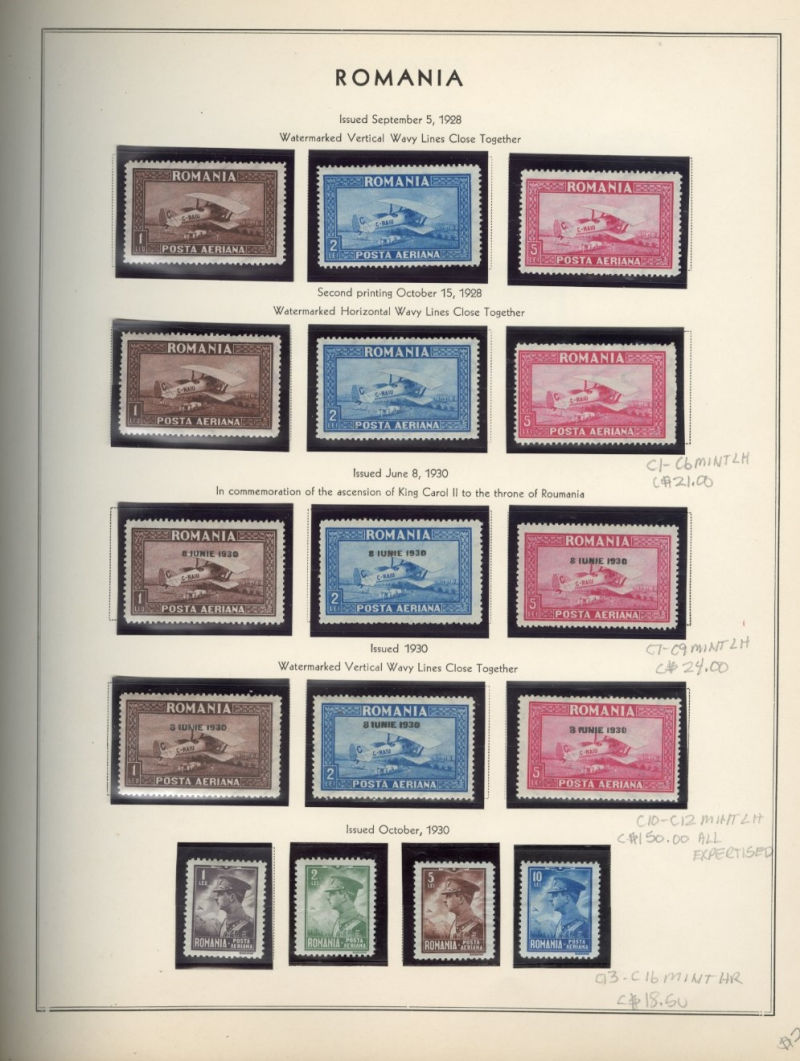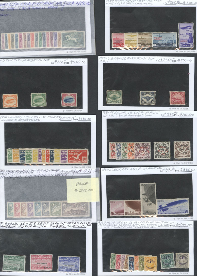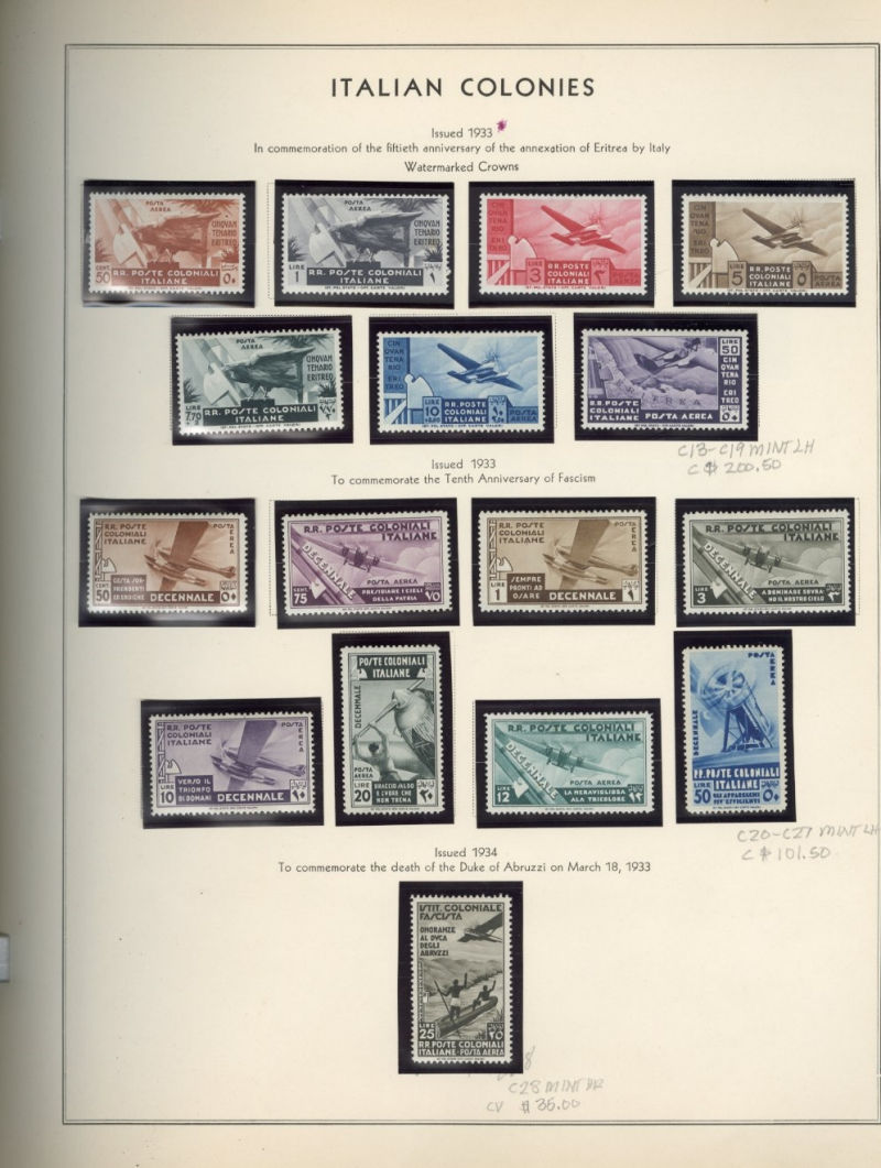 and CO2 Servizio di Stato), Italian Colonies, Japan (C1-2), British Commonwealth, Newfoundland (C2,3,6-18), Nicaragua, including souvenir sheets, Panama, Paraguay, Philippines (including C1-6,9-28), Romania, Salvador, San Marino (C1-16), Spain &