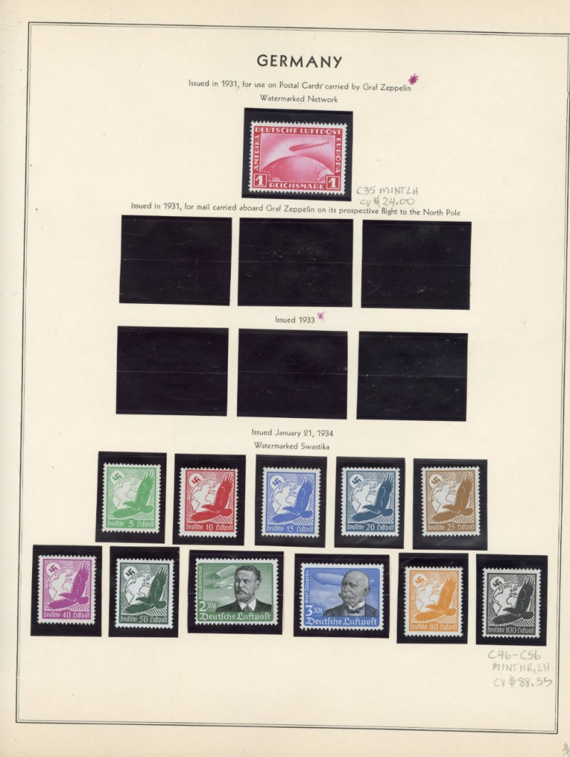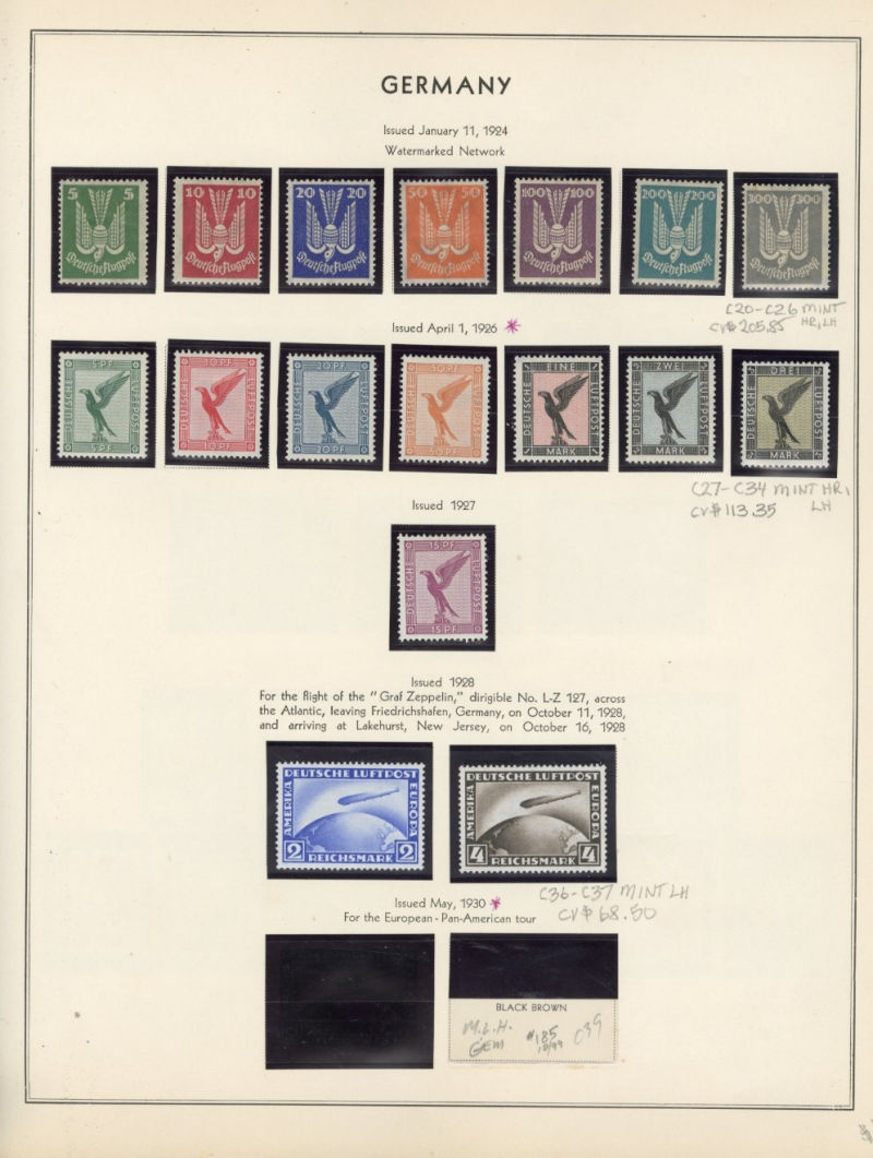 LOTS AND COLLECTIONS Worldwide Air Post 1918-1969 collection of many hundreds, singles and sets, used and unused in 7 brown Scott Air Post albums, Asia, South America, European Countries, France & Colonies, Germany (C40-42), Italy (complete, also CO1
