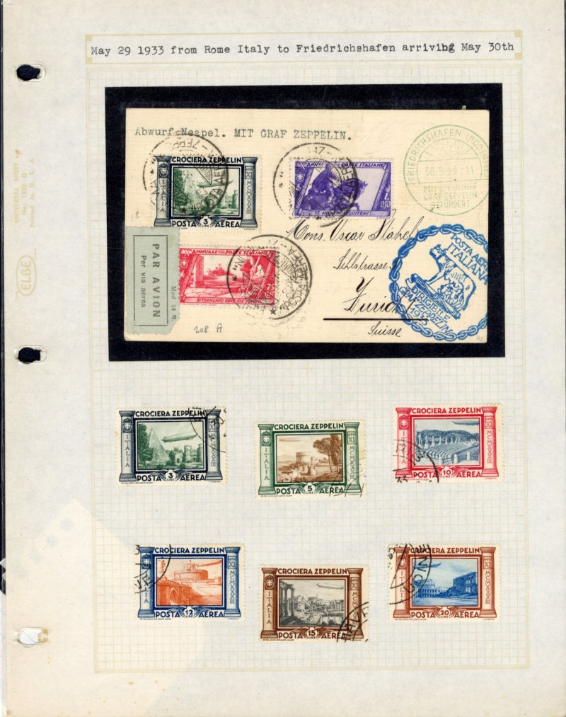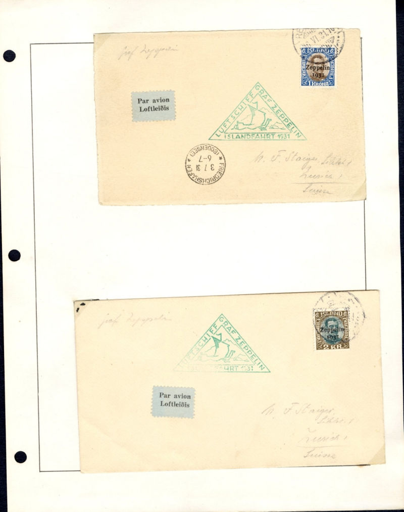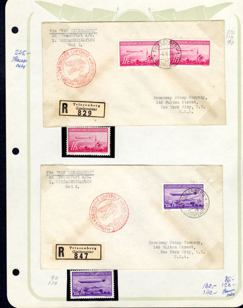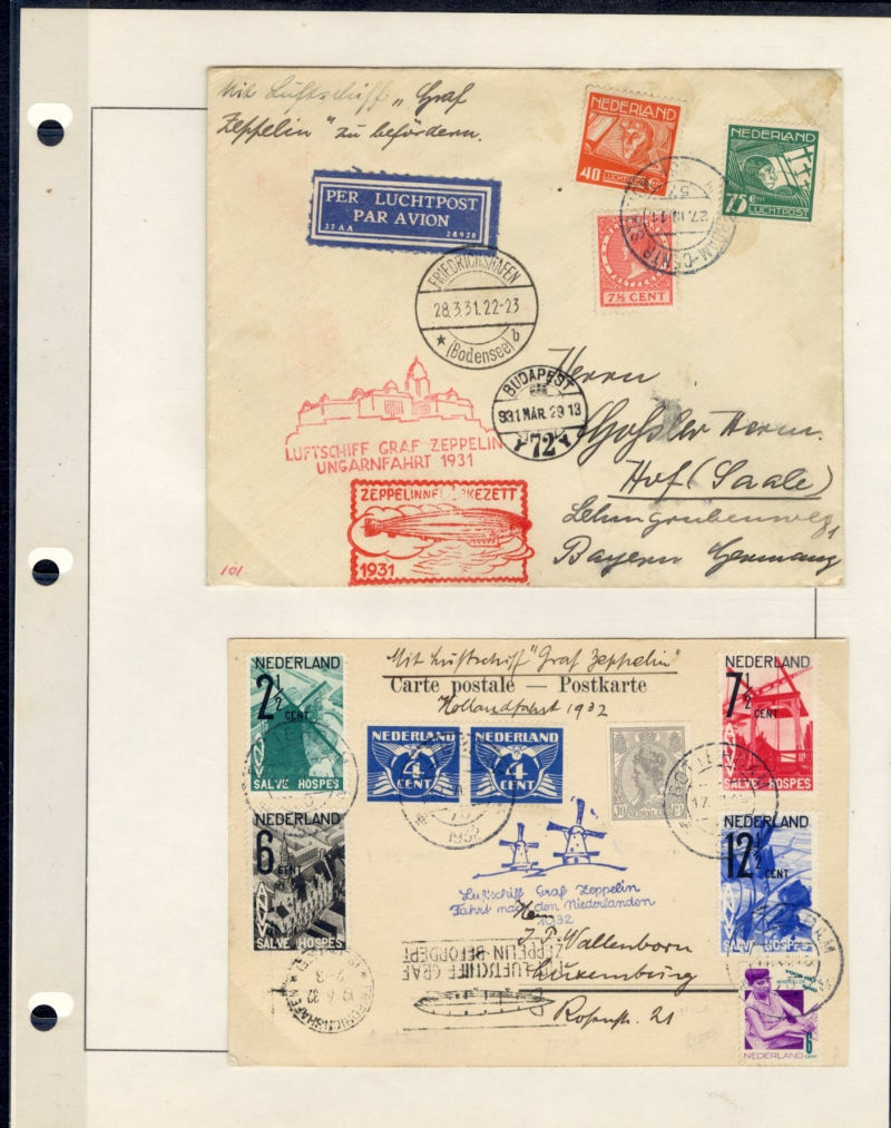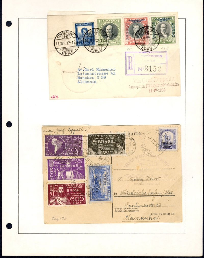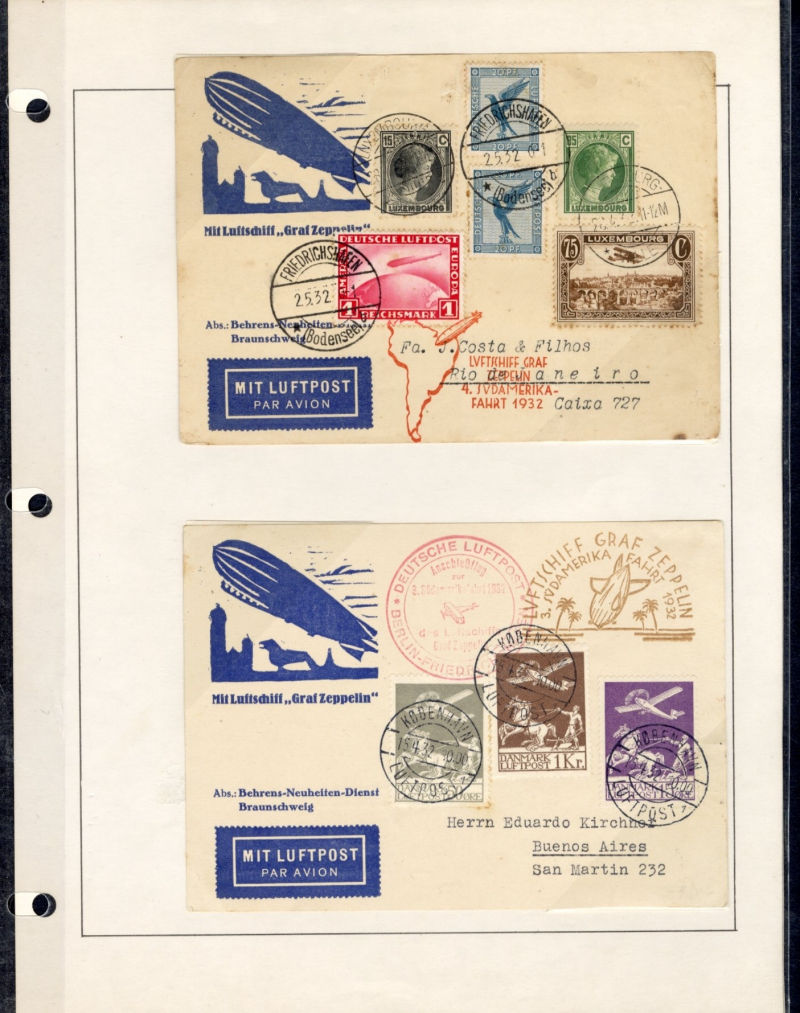 Chicago Flight, Hindenburg Flight to Brazil; Saar(3); Brazil (21), with better U.S.A. overprints and "Graf Zeppelin" surcharges, Chile (1); San Marino (2); Italy (3); Russia (2); Denmark; Finland (2); Iceland (2); Luxembourg (1); Netherlands (4);