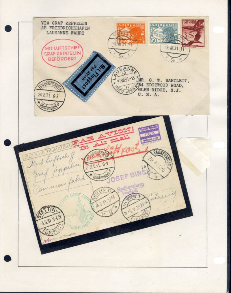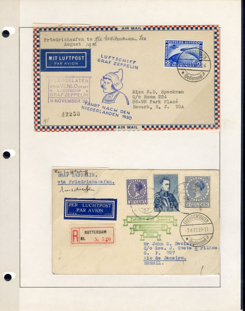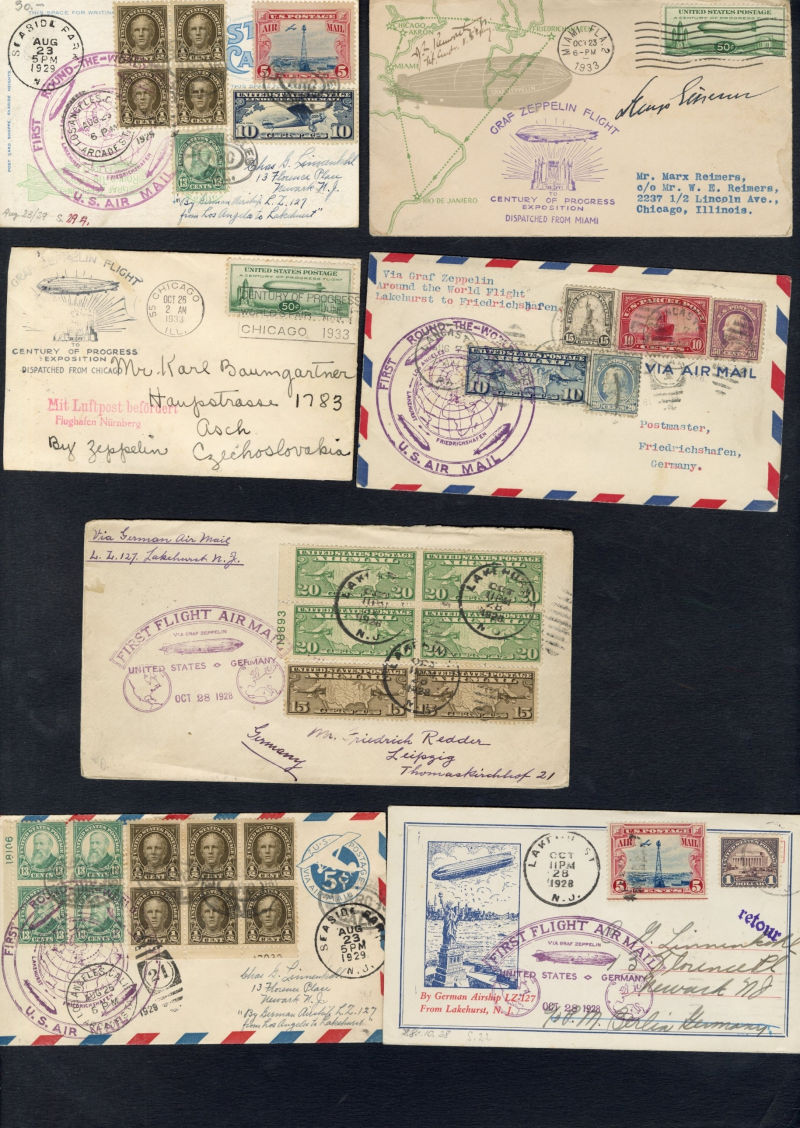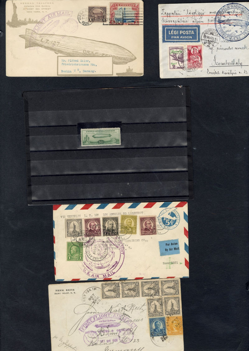 LOTS AND COLLECTIONS WORLDWIDE COVERS and POSTAL HISTORY Zeppelin Flights 1929-36 balance of a collection, with United States (13), including Roessler illegal1c "Graf Zeppelin" overprint on card to Germany, two covers signed by Dr.Hugo Eckener and