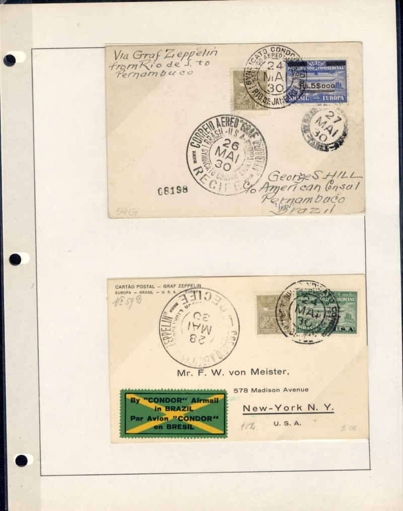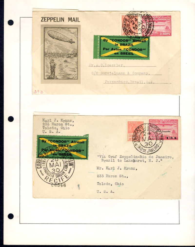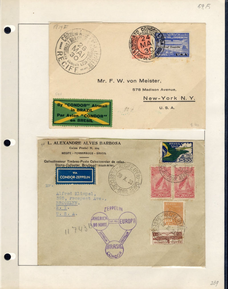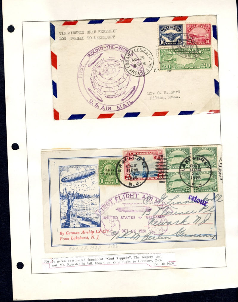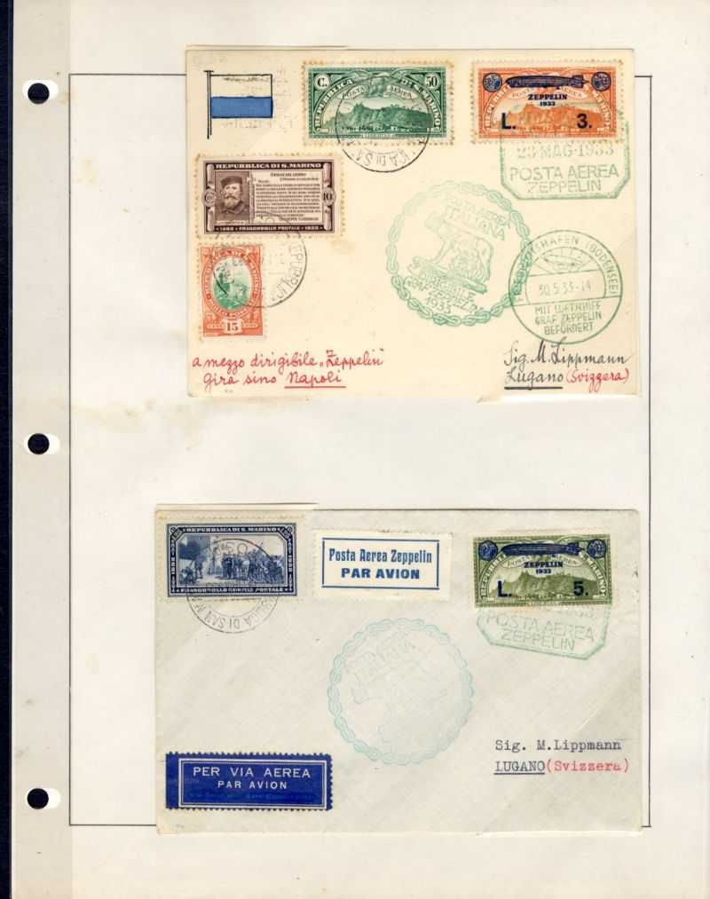 LOTS AND COLLECTIONS WORLDWIDE COVERS and POSTAL HISTORY Zeppelin Flights 1929-36 balance of a collection, with United States (13), including Roessler illegal1c "Graf Zeppelin" overprint on card to Germany, two covers signed by Dr.Hugo Eckener and