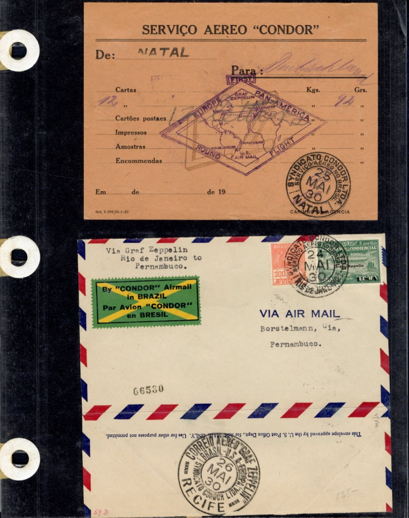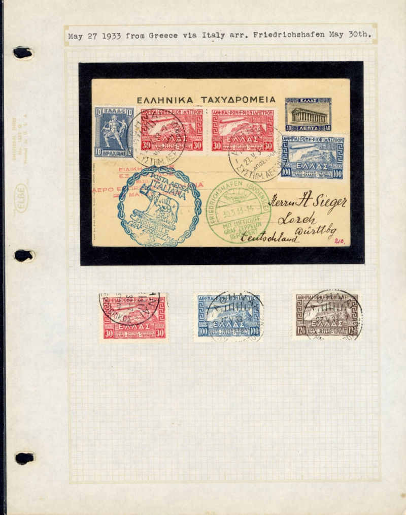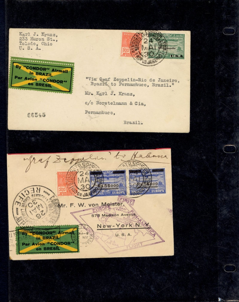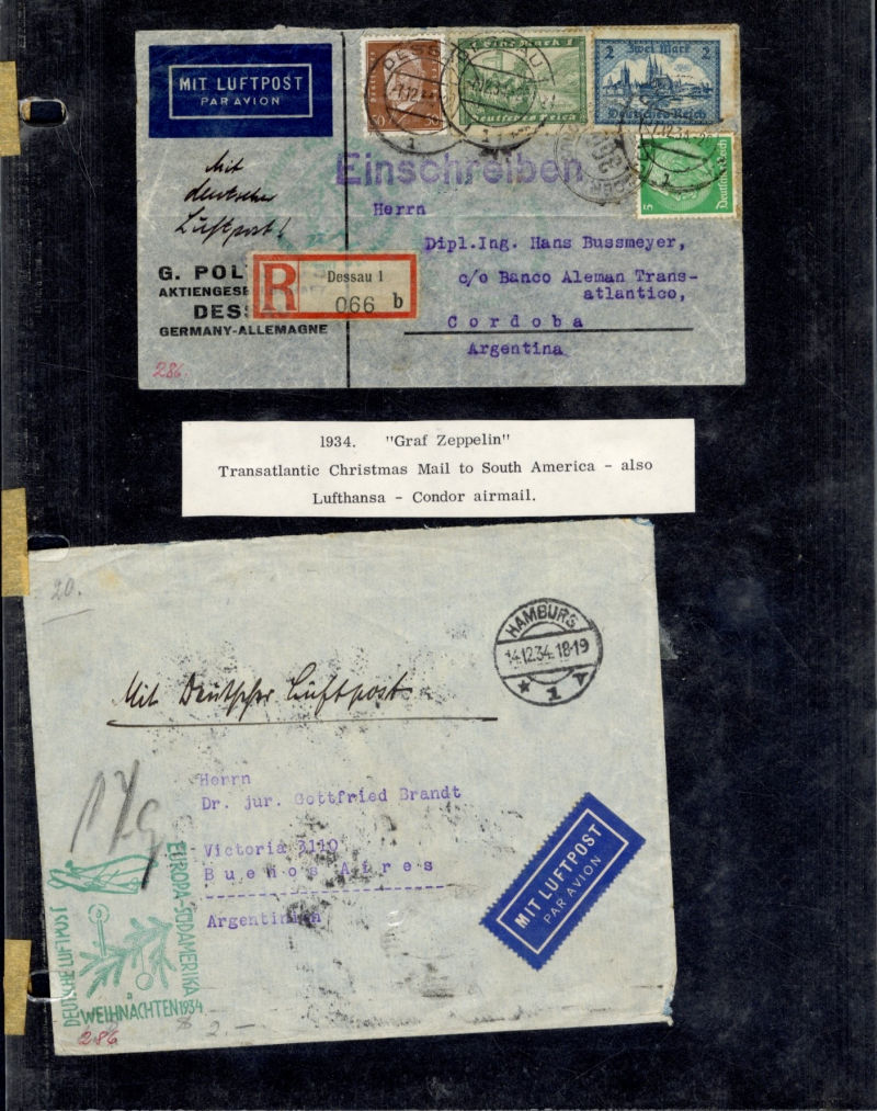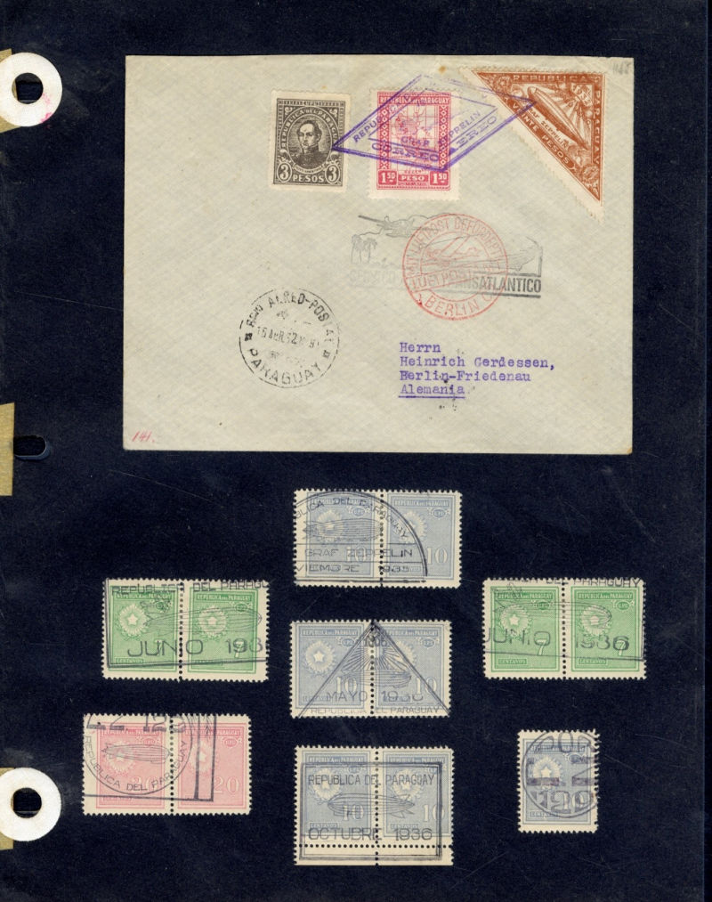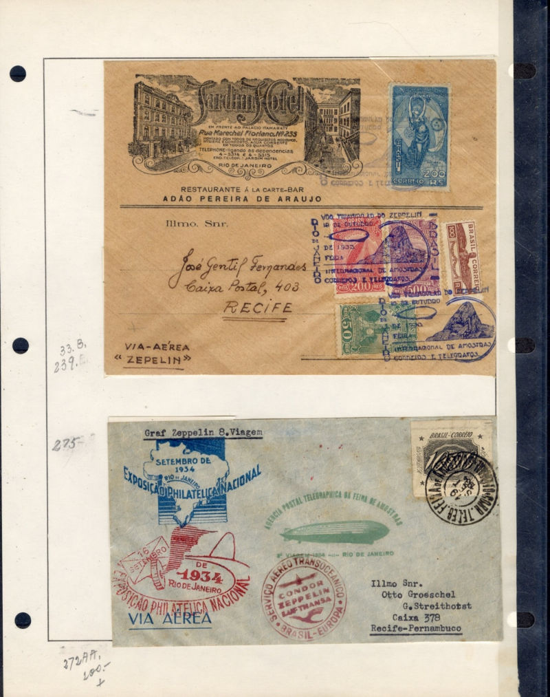 Hungary (3); Spain (3); Greece; Germany (10+, including C43, C43-44); Great Britain; Paraguay (11); Argentina with blue & green overprints, complete sets, each on flown cover to Europe; Bolivia; Uruguay (2), plus others, with unused sets of Zeppelin