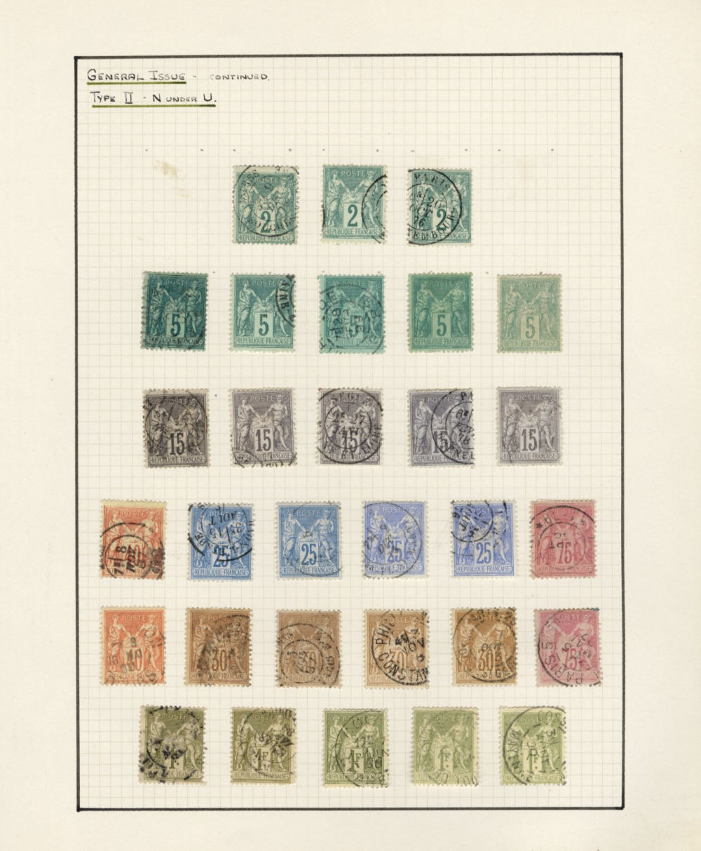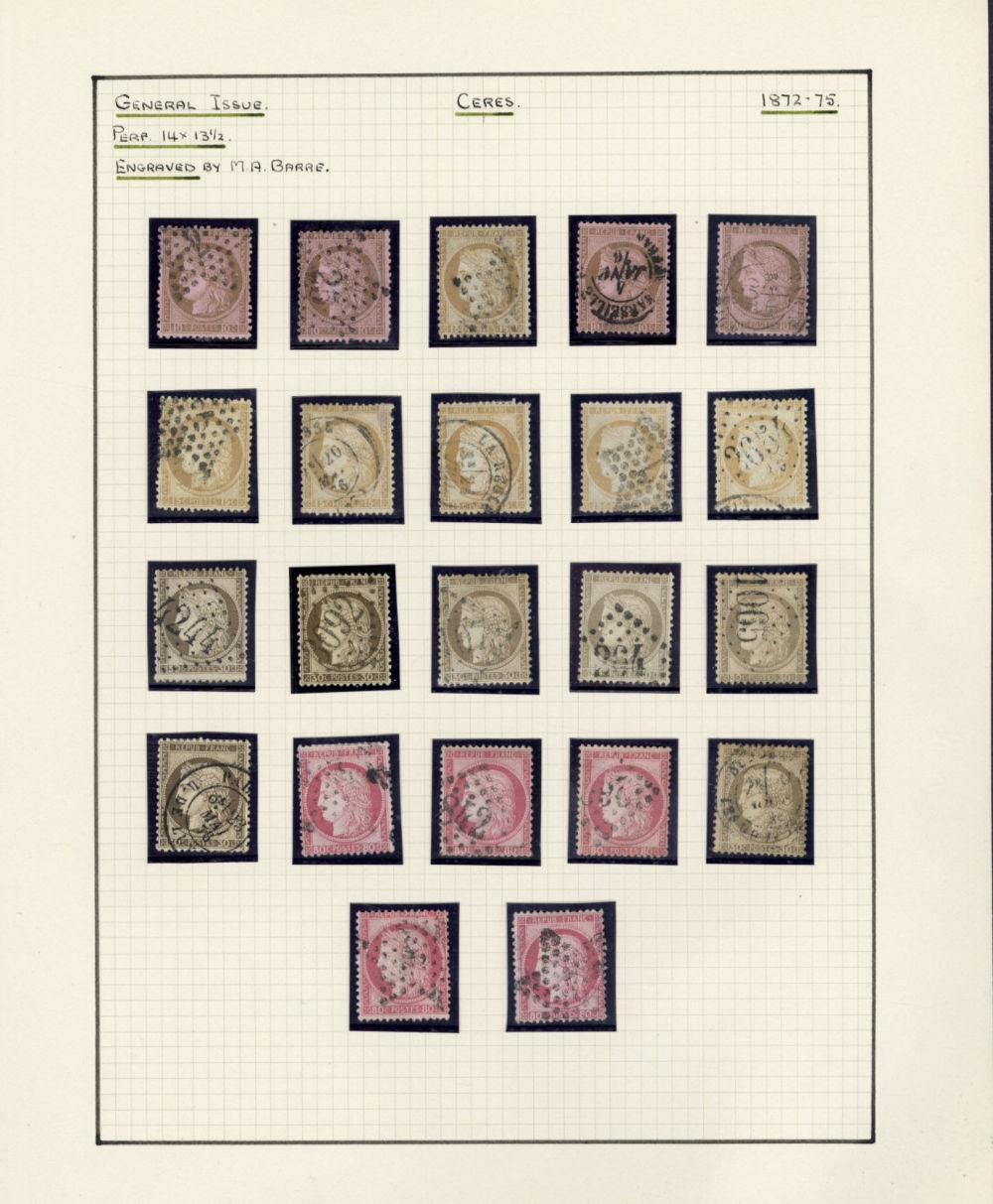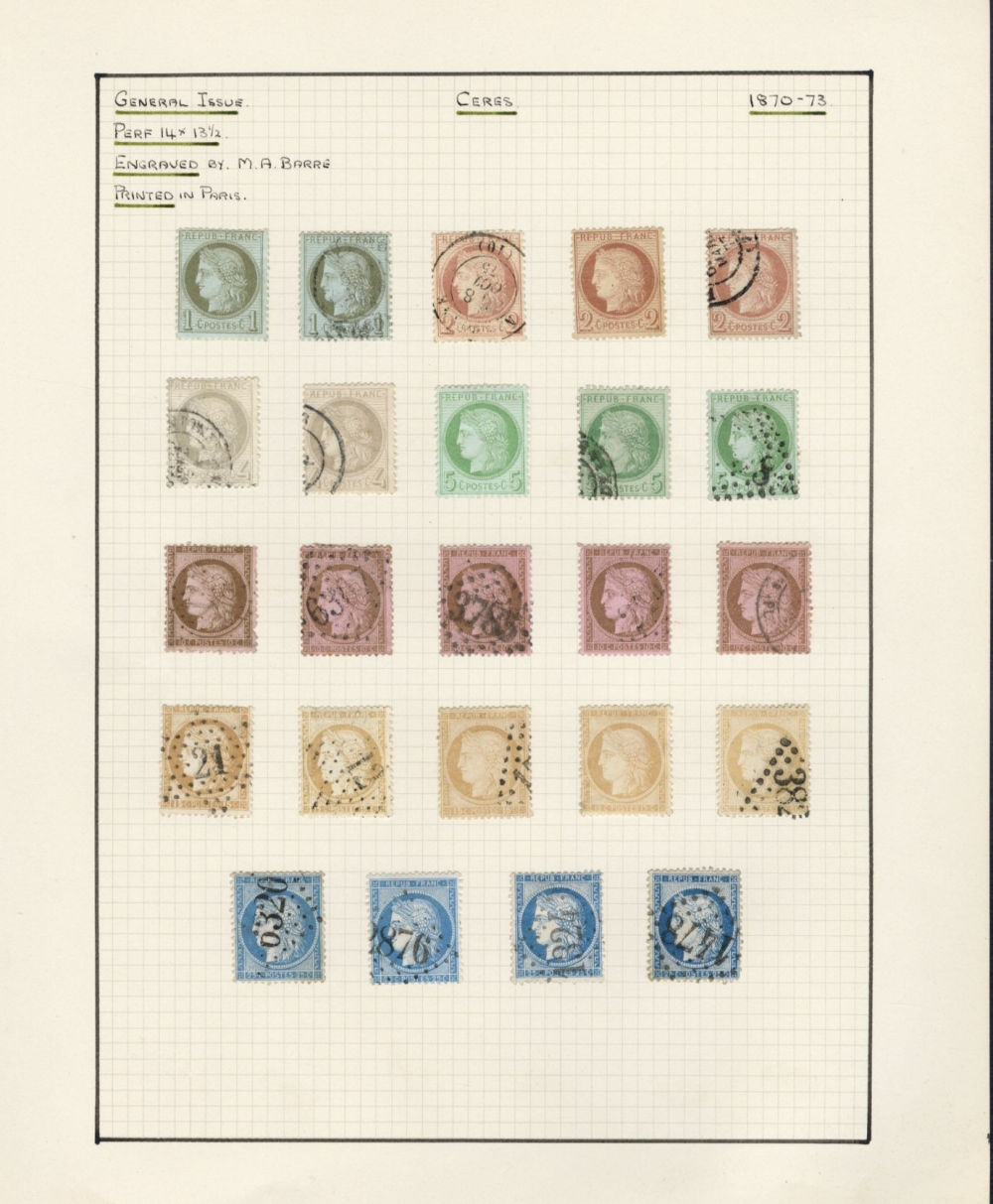 1362 O, og   imageFRANCE 1849-1927 collection on home-made pages, used and unused, with several early values including 1849 40c, 1fr (3), a very attractive unused 1852 25c blue with original gum (thin spot), 1862 fine unused 4c, 1869 5fr, four examples, two with numbered Star cancels, a good range of the imperf. 1870 issue to 80c, Type Sage and Peace and Commerce issues, etc., mixed condition, some usual faults noted, high catalogue (Image) (Image 2) (Image 3) (Image 4) (Image 5) (Image 6) (Image 7) (Image 8) (Image 9) (Image 10) (Image 11) (Image 12) (Image 13) (Image 14) (Image 15) (Image 16) (Image 17) (Image 18) (Image 19) (Image 20) (Image 21) (Image 22) (All Images)