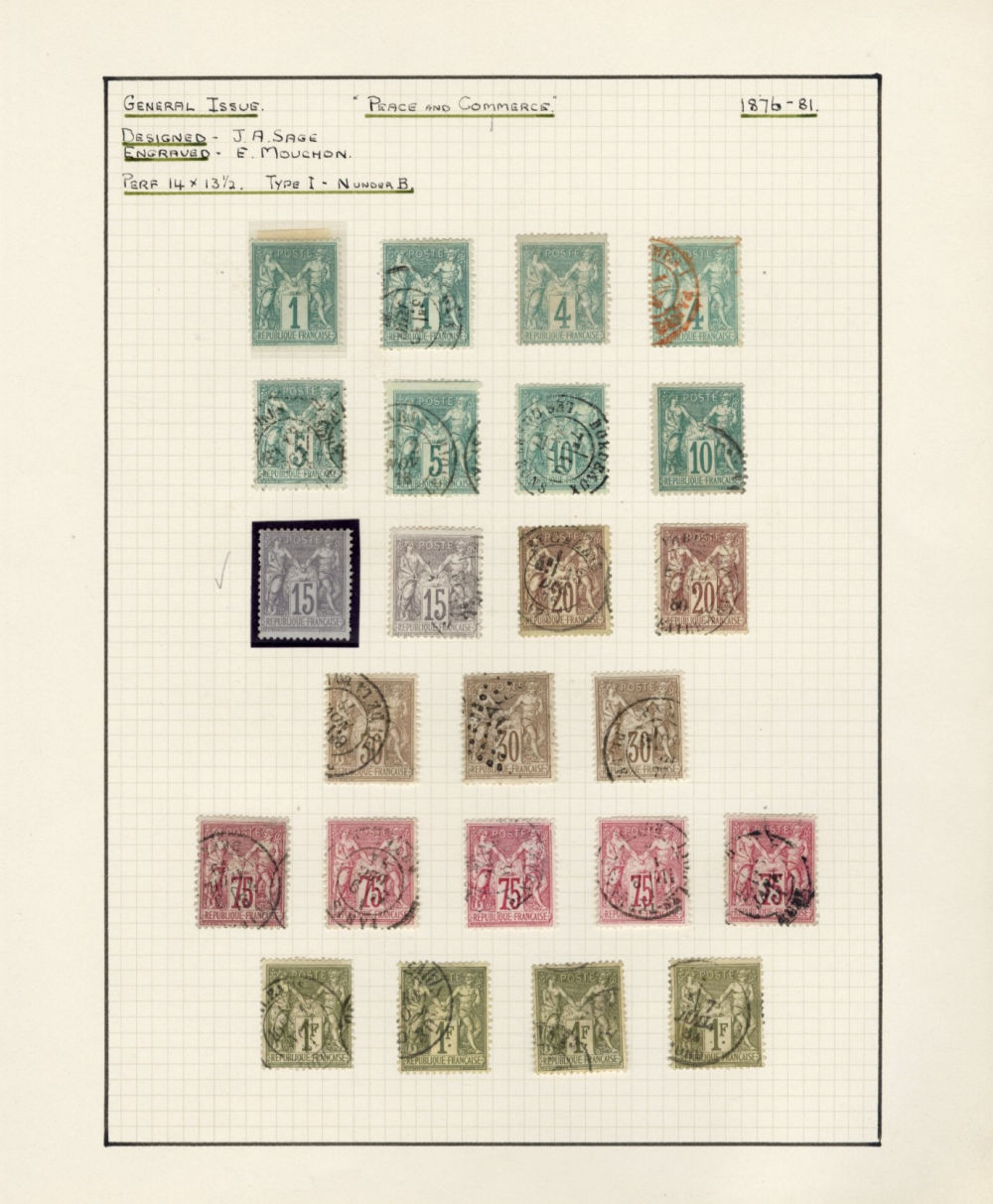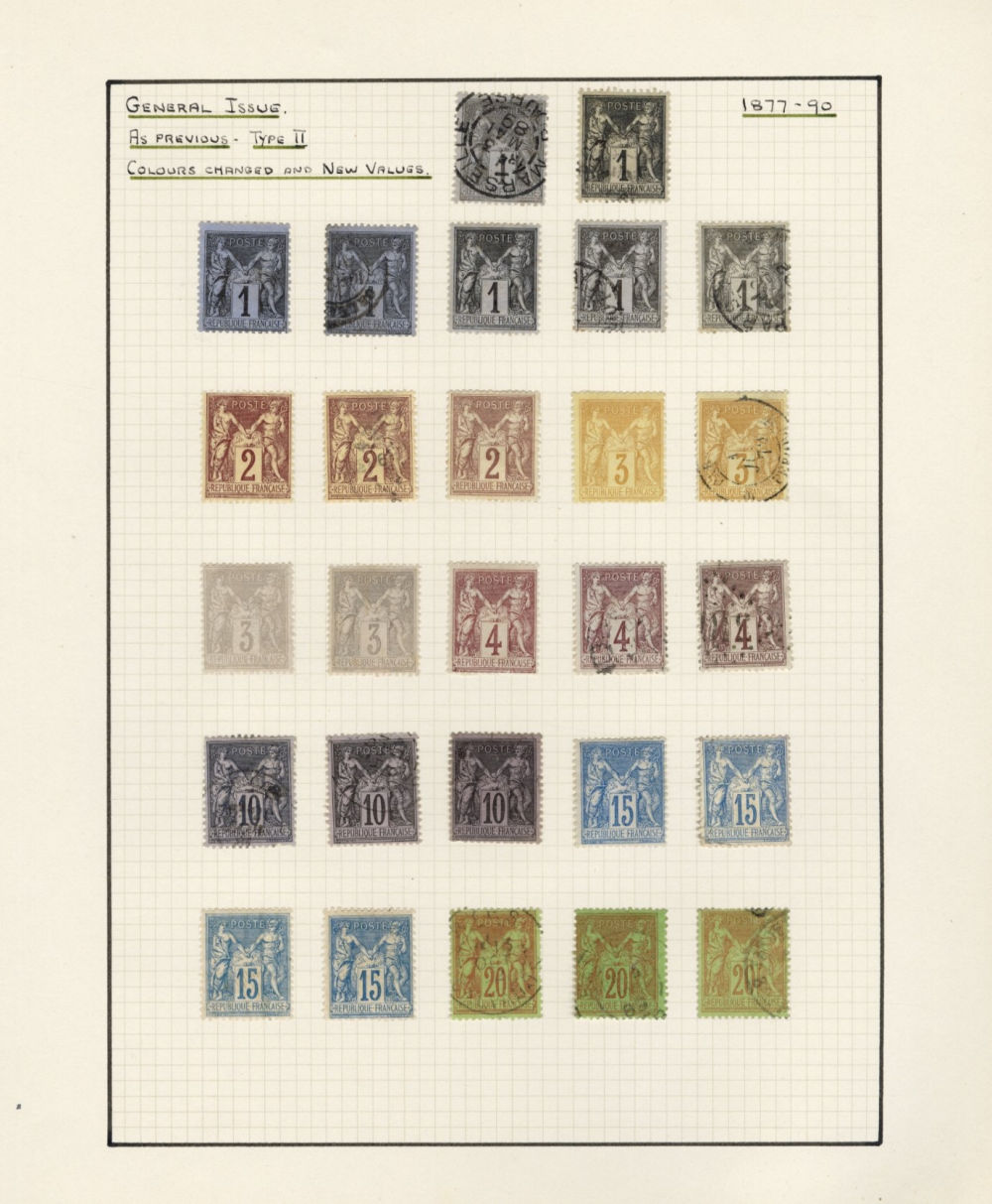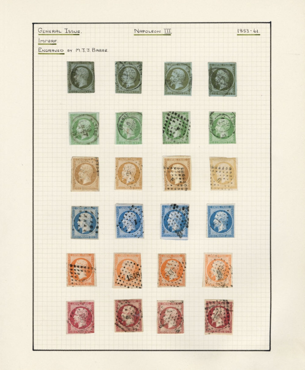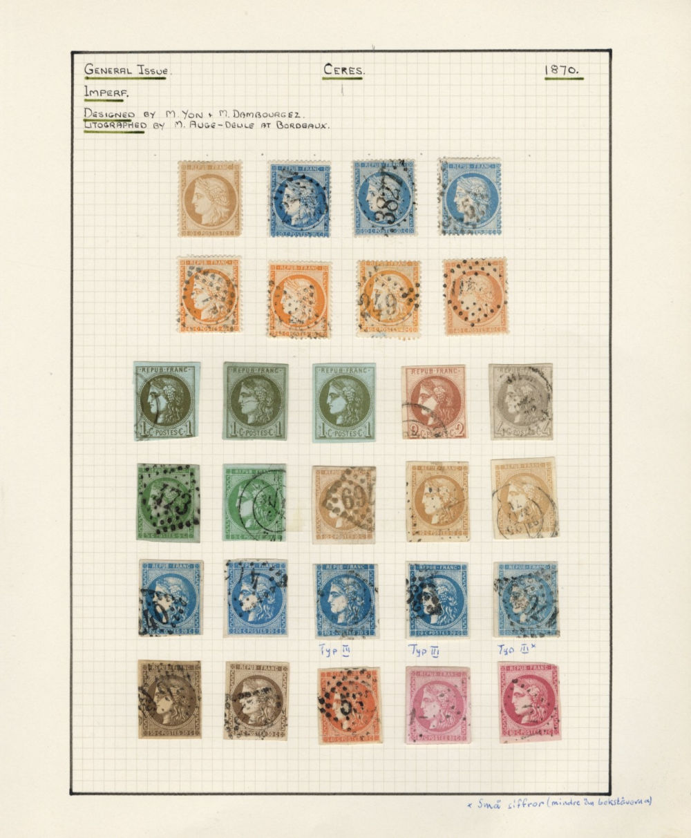 1362 O, og   imageFRANCE 1849-1927 collection on home-made pages, used and unused, with several early values including 1849 40c, 1fr (3), a very attractive unused 1852 25c blue with original gum (thin spot), 1862 fine unused 4c, 1869 5fr, four examples, two with numbered Star cancels, a good range of the imperf. 1870 issue to 80c, Type Sage and Peace and Commerce issues, etc., mixed condition, some usual faults noted, high catalogue (Image) (Image 2) (Image 3) (Image 4) (Image 5) (Image 6) (Image 7) (Image 8) (Image 9) (Image 10) (Image 11) (Image 12) (Image 13) (Image 14) (Image 15) (Image 16) (Image 17) (Image 18) (Image 19) (Image 20) (Image 21) (Image 22) (All Images)
