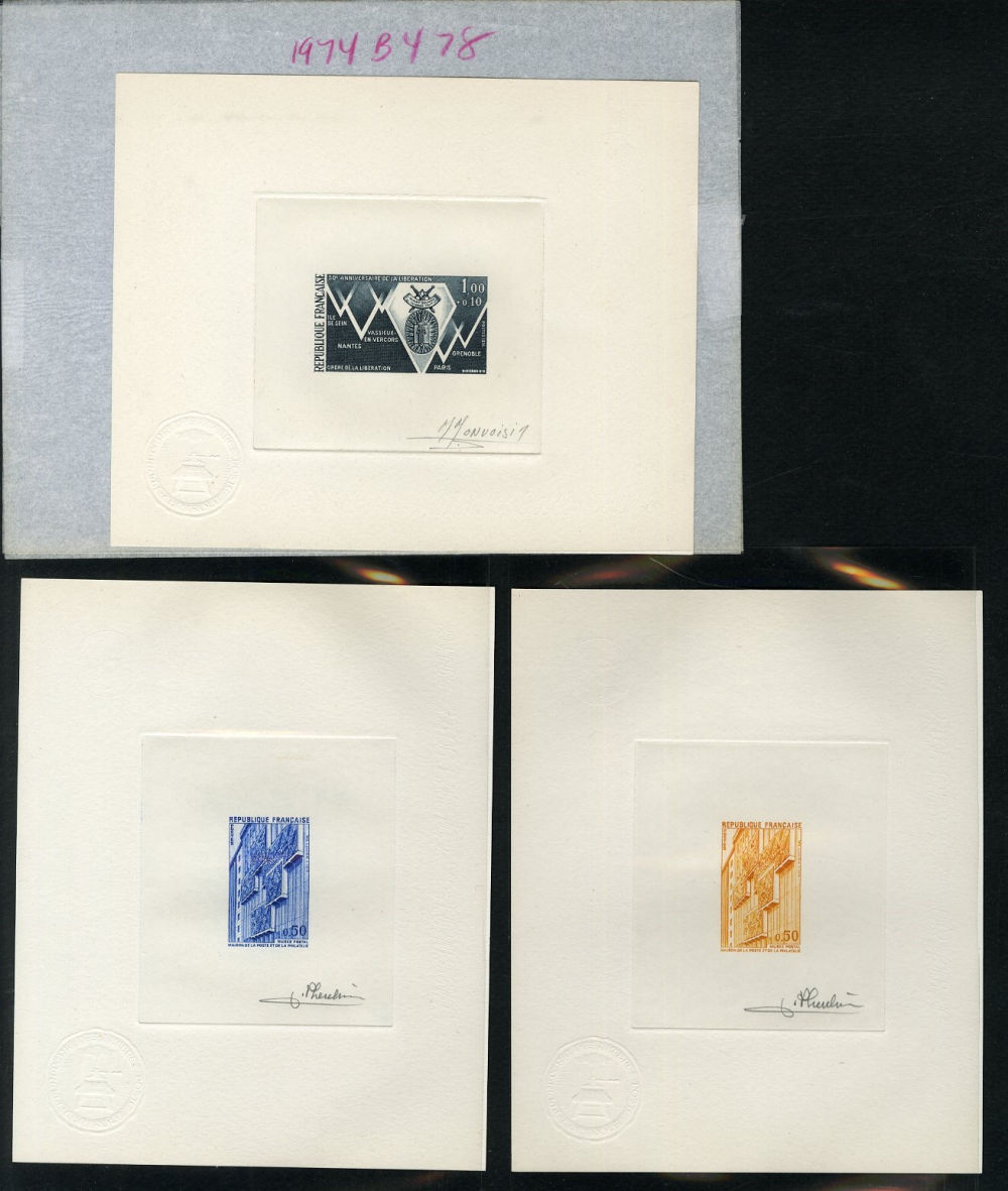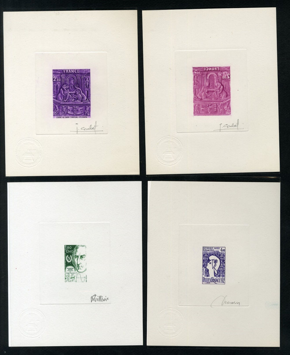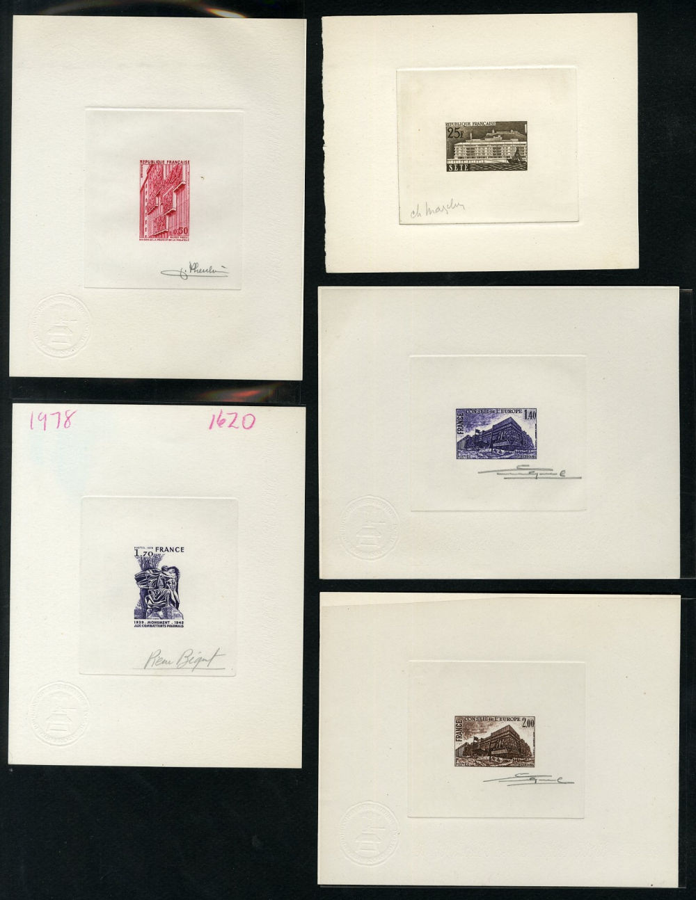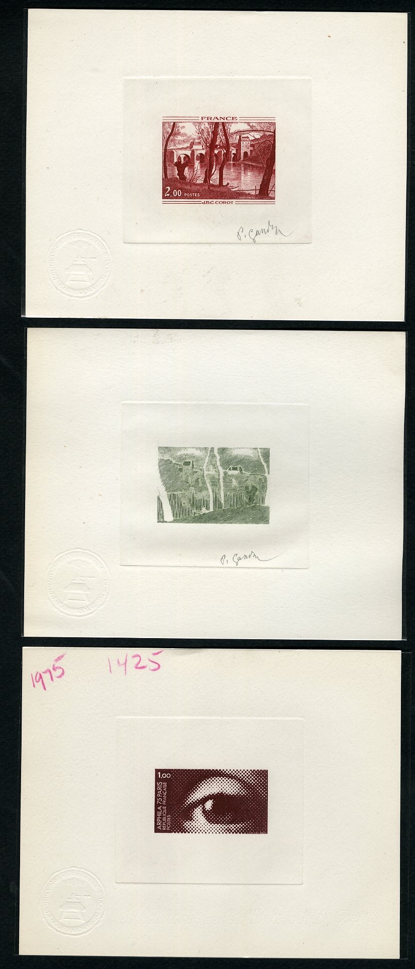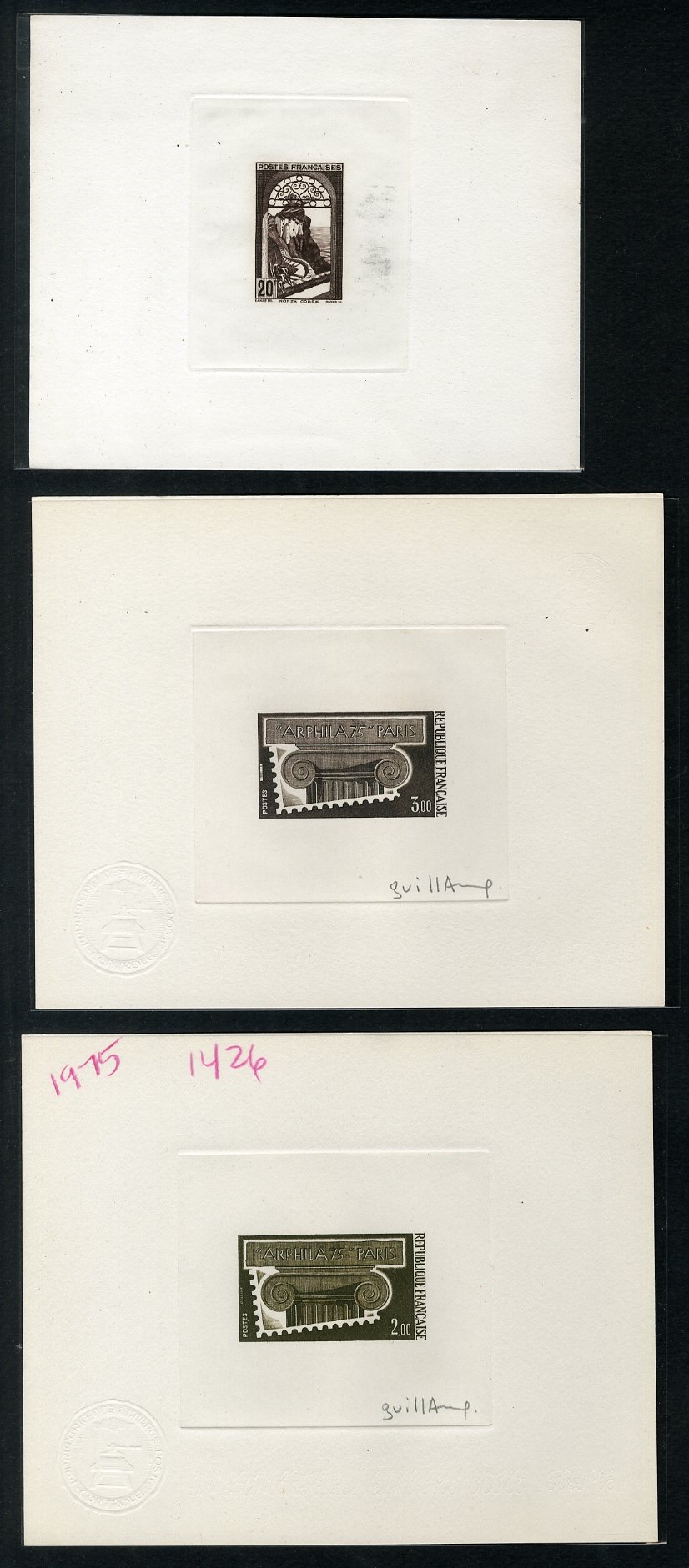 1365 P   imageFRANCE 1970s Signed Artist Die Proofs, selection of 19 different, including two Paintings (positive/negative impressions of each), others include Arphila, Postal Museum, Anniversary of Liberation, Monuments, etc., v.f., ex-Serebrakian (Image) (Image 2) (Image 3) (Image 4) (Image 5) (All Images)