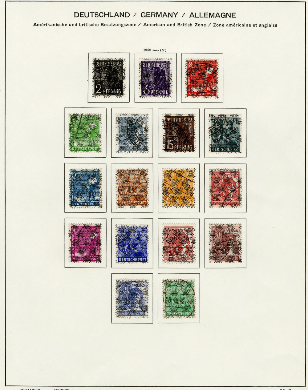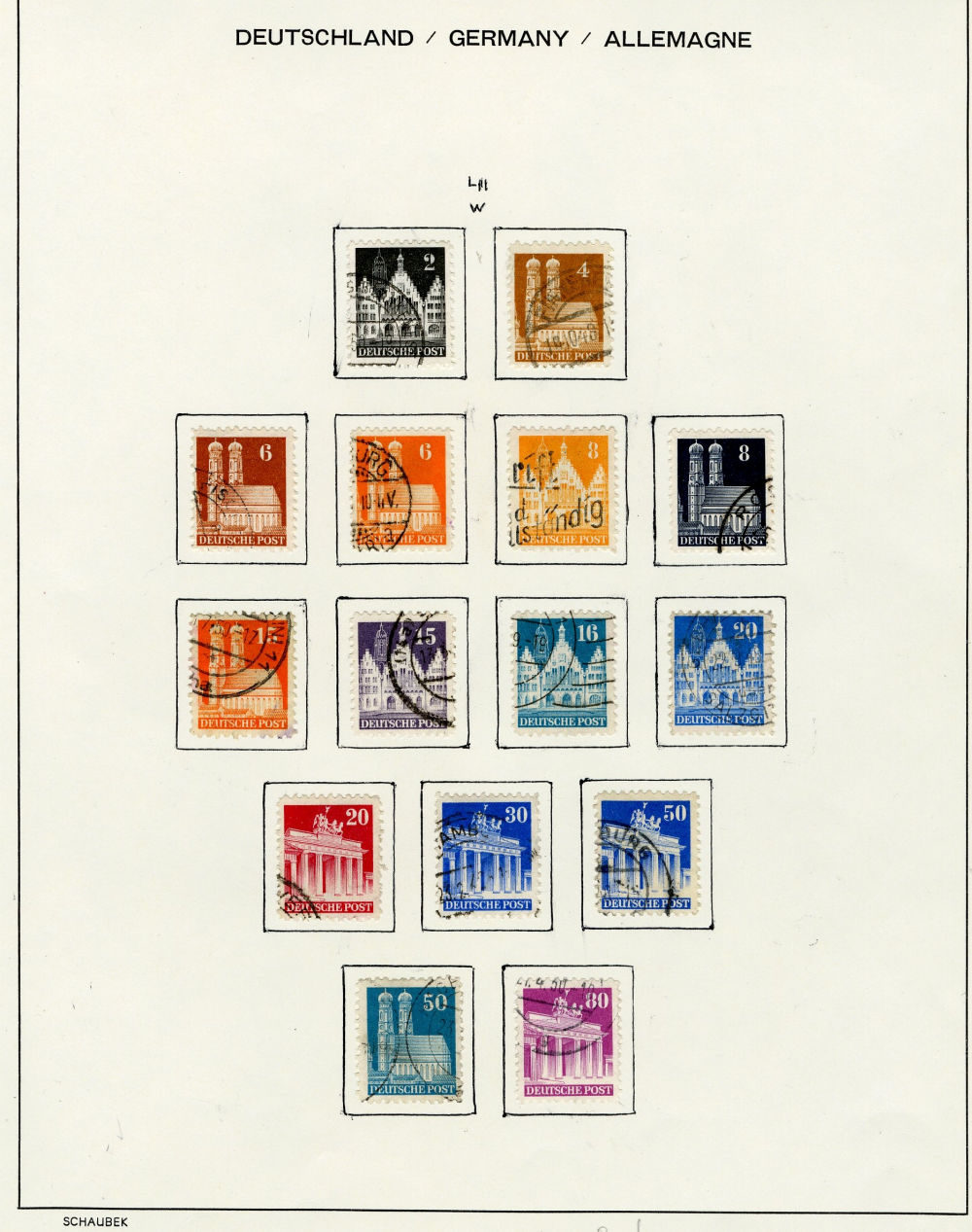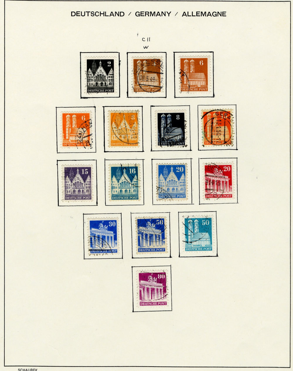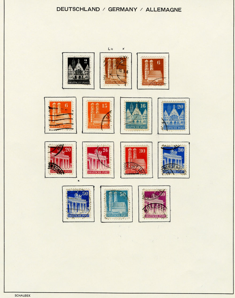 1372 O   imageGERMANY 1945-73 collection of used singles, sets and souv. sheets in Schaubek album, with British and American Zone, Federal Republic incl. semi-postals, Berlin including Red Overprint complete, French Zone, Saar, many better items, mostly fine-v.f. (Image) (Image 2) (Image 3) (Image 4) (Image 5) (Image 6) (Image 7) (Image 8) (Image 9) (Image 10) (Image 11) (Image 12) (Image 13) (Image 14) (Image 15) (Image 16) (Image 17) (Image 18) (All Images)