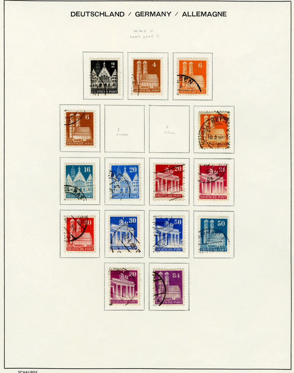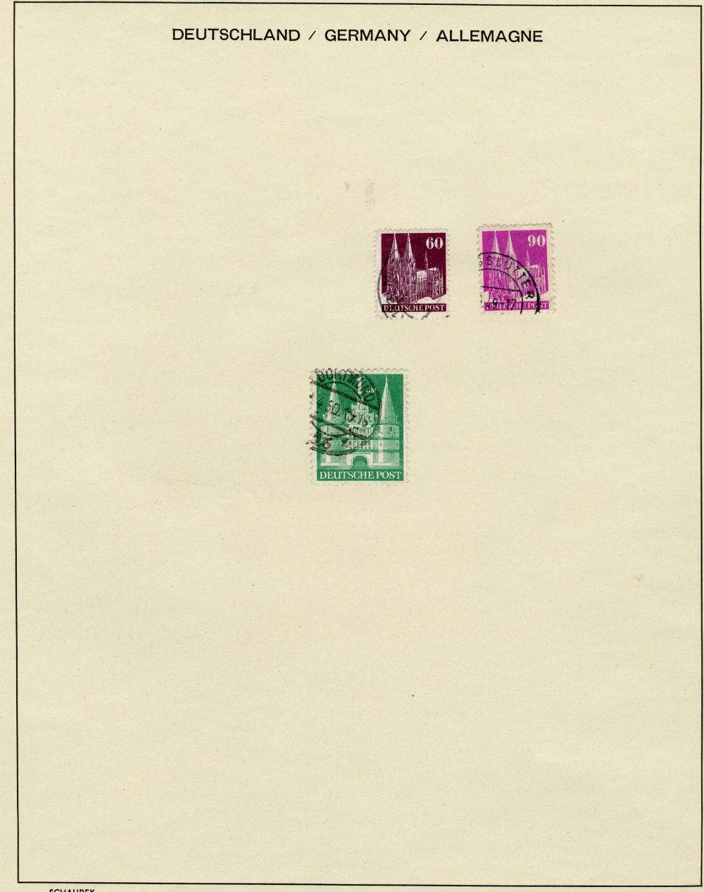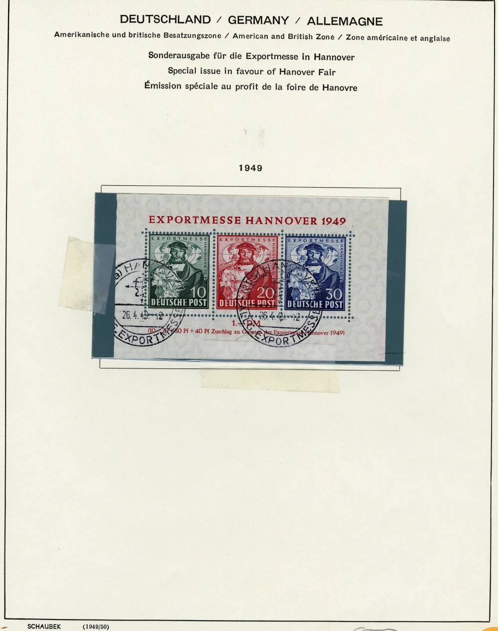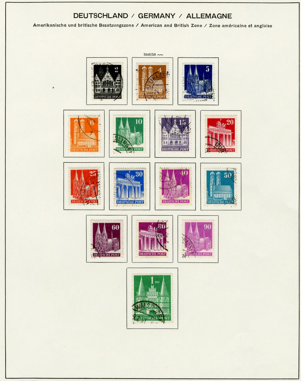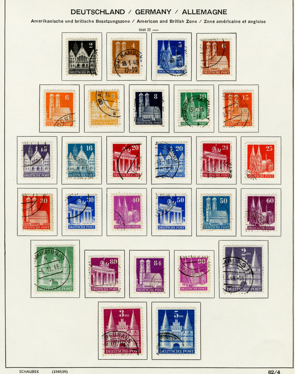 1372 O   imageGERMANY 1945-73 collection of used singles, sets and souv. sheets in Schaubek album, with British and American Zone, Federal Republic incl. semi-postals, Berlin including Red Overprint complete, French Zone, Saar, many better items, mostly fine-v.f. (Image) (Image 2) (Image 3) (Image 4) (Image 5) (Image 6) (Image 7) (Image 8) (Image 9) (Image 10) (Image 11) (Image 12) (Image 13) (Image 14) (Image 15) (Image 16) (Image 17) (Image 18) (All Images)
