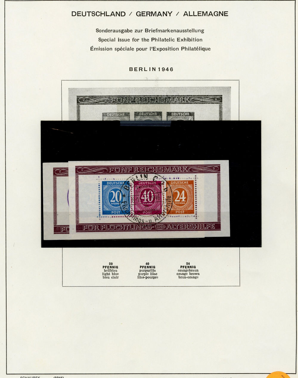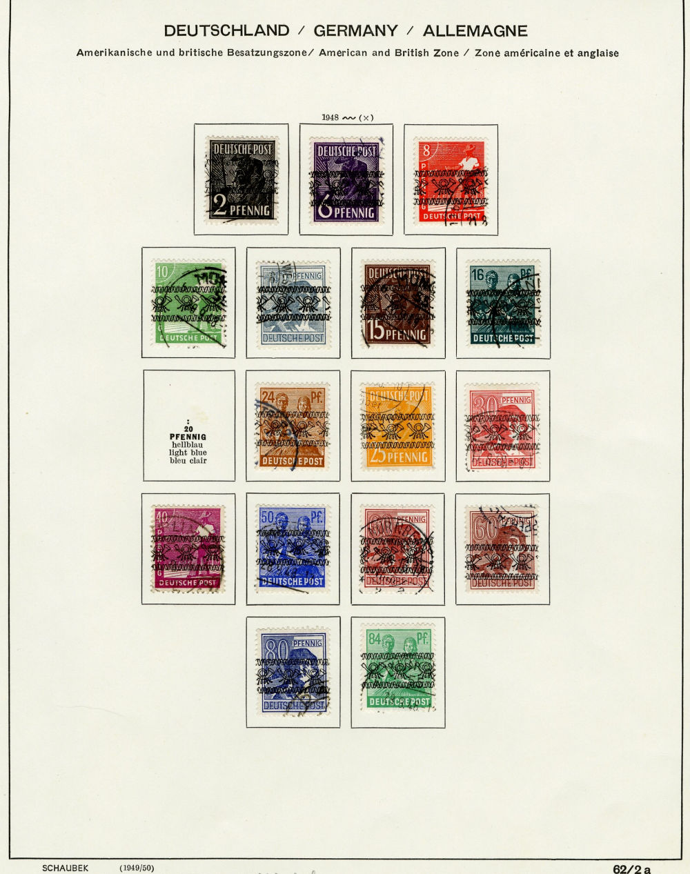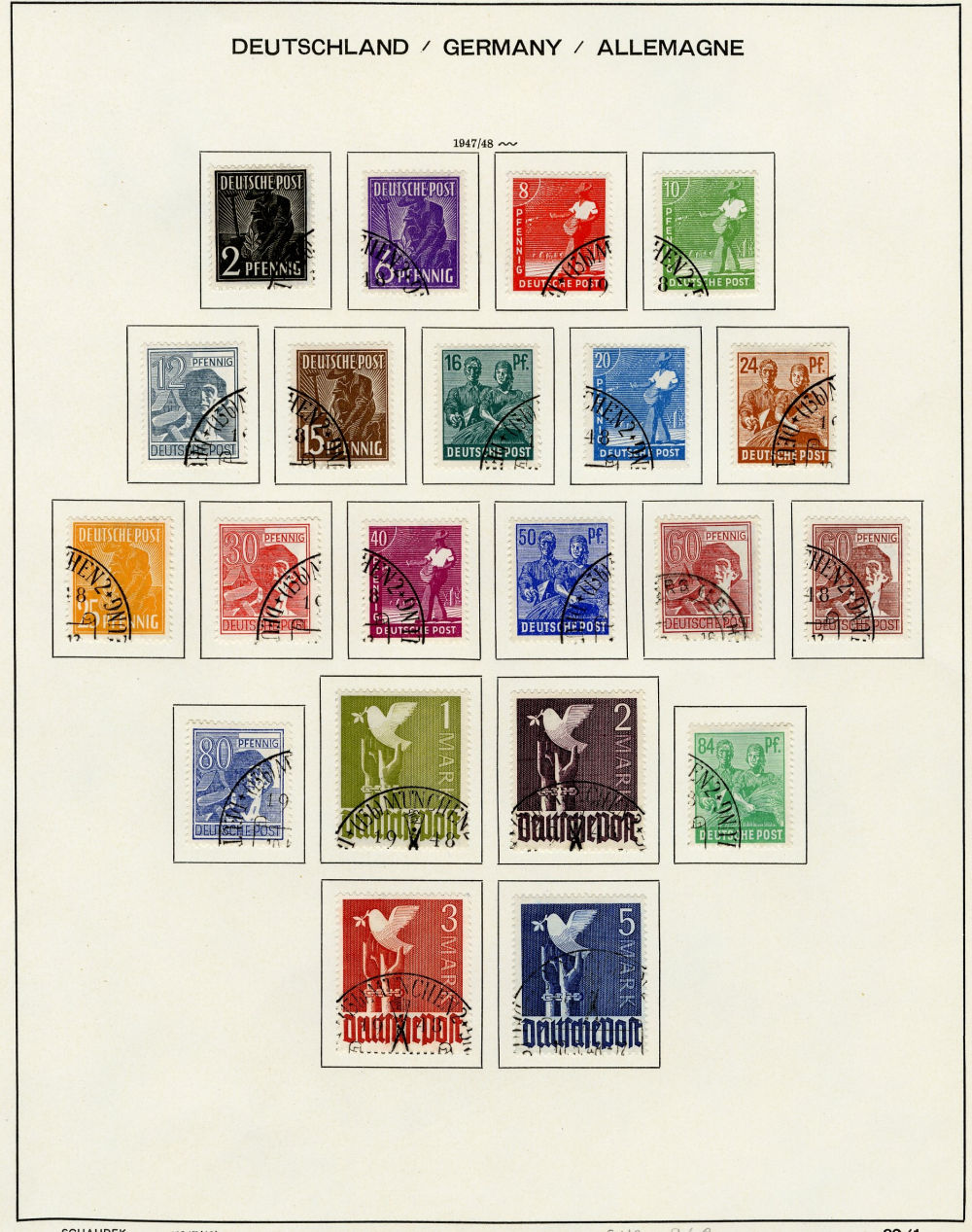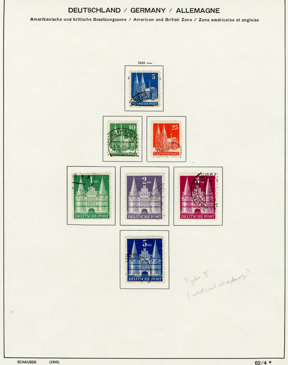 1372 O   imageGERMANY 1945-73 collection of used singles, sets and souv. sheets in Schaubek album, with British and American Zone, Federal Republic incl. semi-postals, Berlin including Red Overprint complete, French Zone, Saar, many better items, mostly fine-v.f. (Image) (Image 2) (Image 3) (Image 4) (Image 5) (Image 6) (Image 7) (Image 8) (Image 9) (Image 10) (Image 11) (Image 12) (Image 13) (Image 14) (Image 15) (Image 16) (Image 17) (Image 18) (All Images)