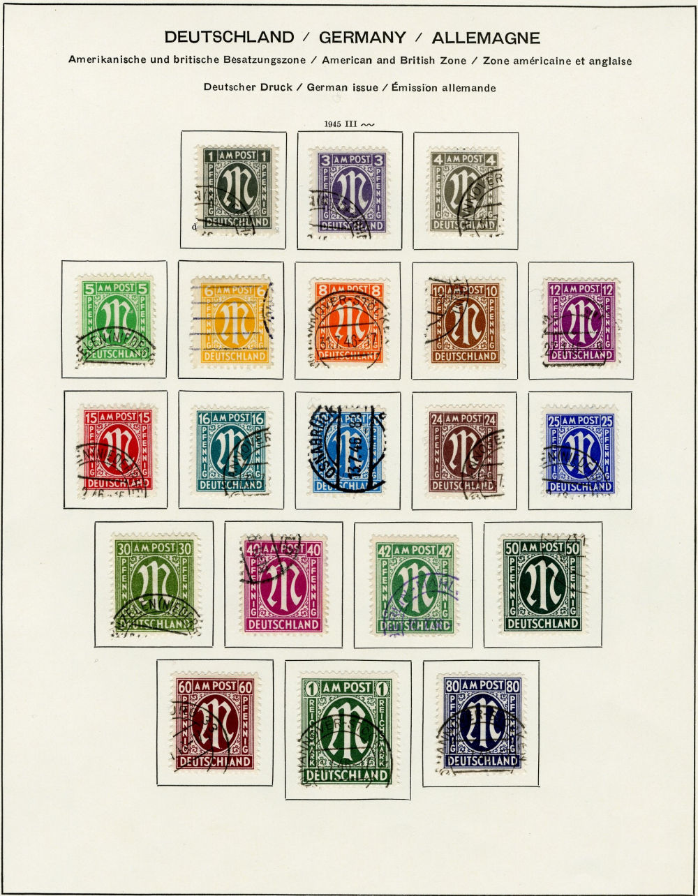 1371 O, og, COVER   GERMANY 1945-2005 seven-volume collection, mostly Scott album pages, Allied Occupation Zone (AMG) with Currency Reform overprints, including unissued values and many varieties, specialized Buildings Series, complete French Zone, with souvenir sheets, DDR, including early issues, Goethe souvenir sheet on cover, Post WWII locals, Apolda-Wittenberg, singles, sets, provisional Hand-Overprints, souvenir sheets, plus over-complete unused (and often additional used) Federal Republic, with Posthorn and Heuss booklets and Berlin, including overprints, Airlift covers, some postal stationery and much more, clean, diversified and attractive collection of post-WWII Germany