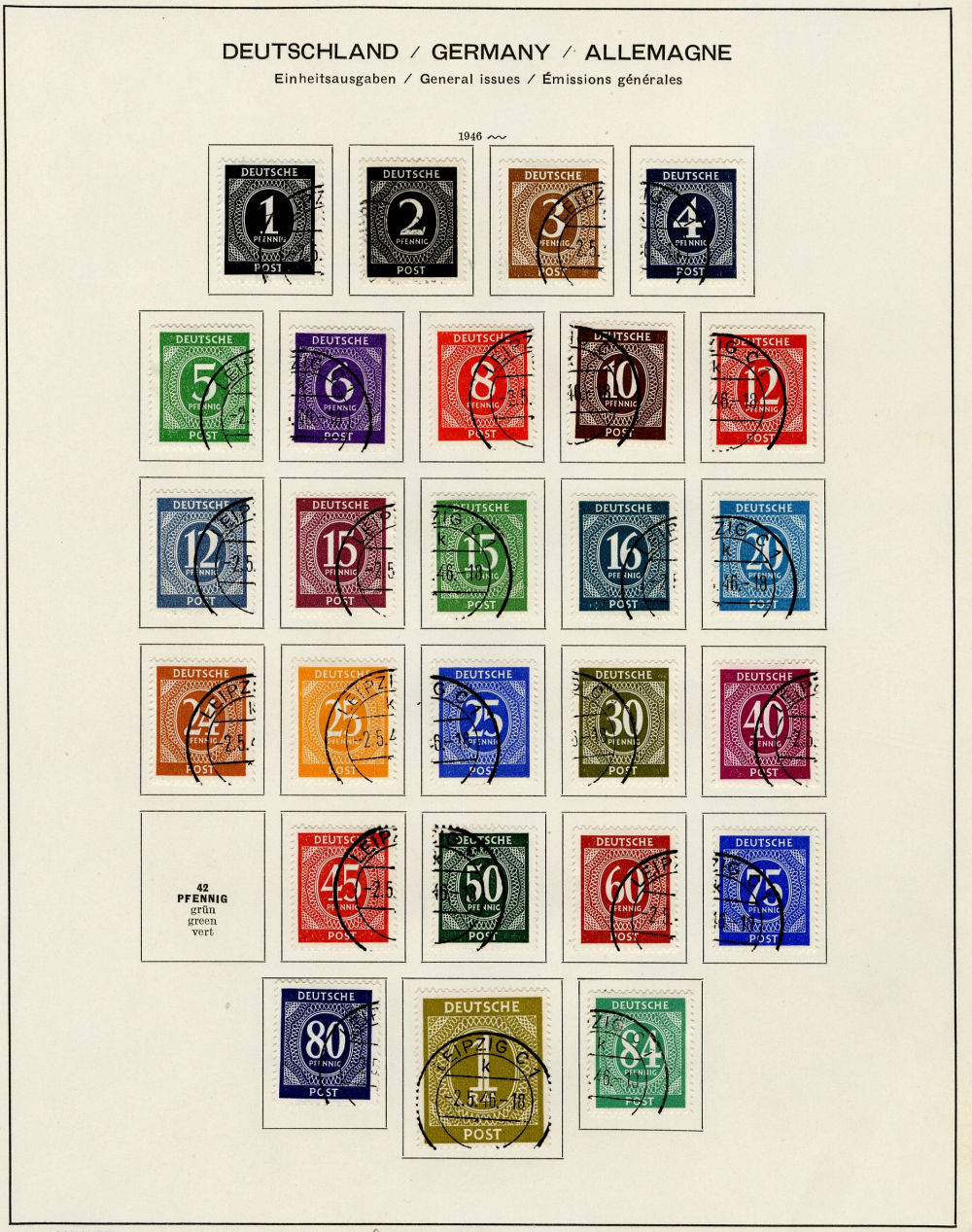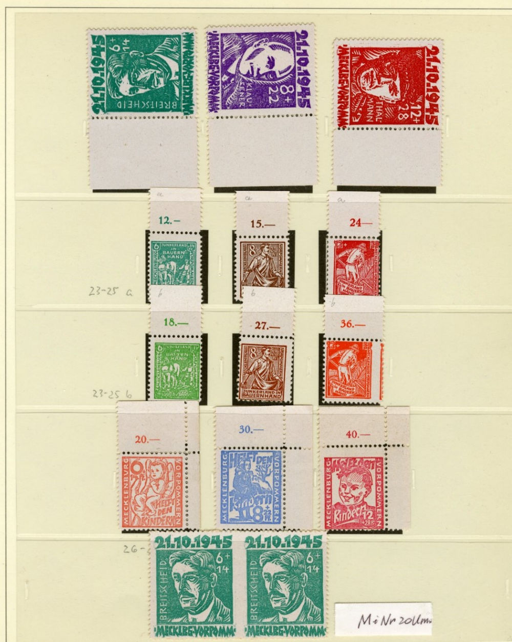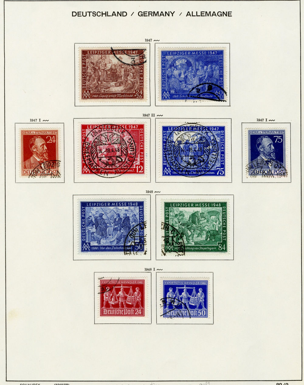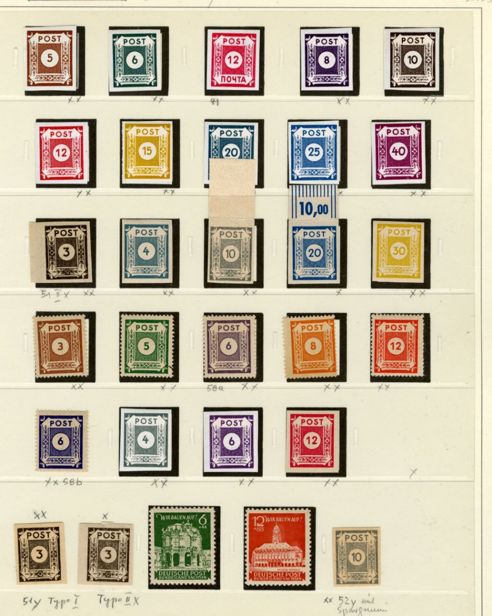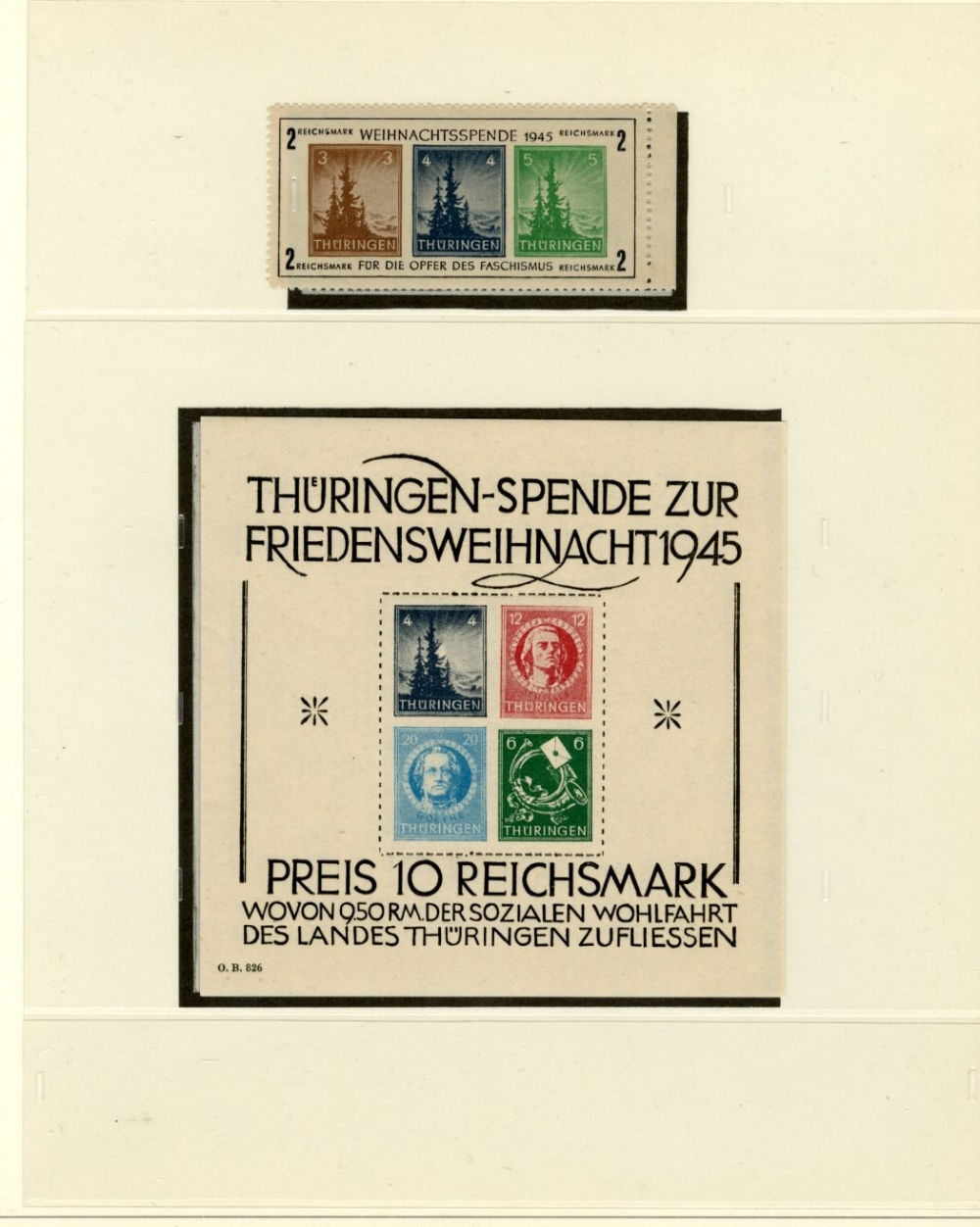 1380 O, og   imageGERMANY - SOVIET ZONE 1945-46 duplicated selection on pages, unused (n.h) and used (sometimes both), with Saxony, Thuringen, Leipzig, Mecklenburg-Verpommern, early DDR, with eight souvenir sheets including Christmas, Anti-Fascist, Leipzig Fair and Goethe, also "Pochta" and perforation varieties (Image) (Image 2) (Image 3) (Image 4) (Image 5) (Image 6) (All Images)