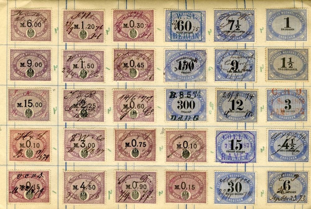 1374 O, og   imageGERMANY Revenue Stamps 1870-1923 selection of 850 used and unused, mostly different in two old-time approval booklets (42 pages), values to 10 million marks, some tete-beche pairs, varieties, etc., mixed condition (Image) (Image 2) (Image 3) (Image 4) (Image 5) (All Images)