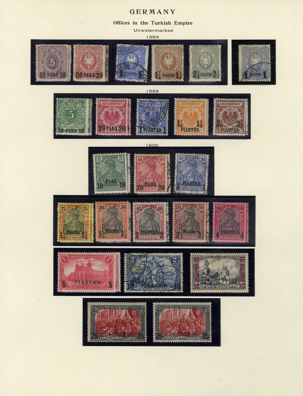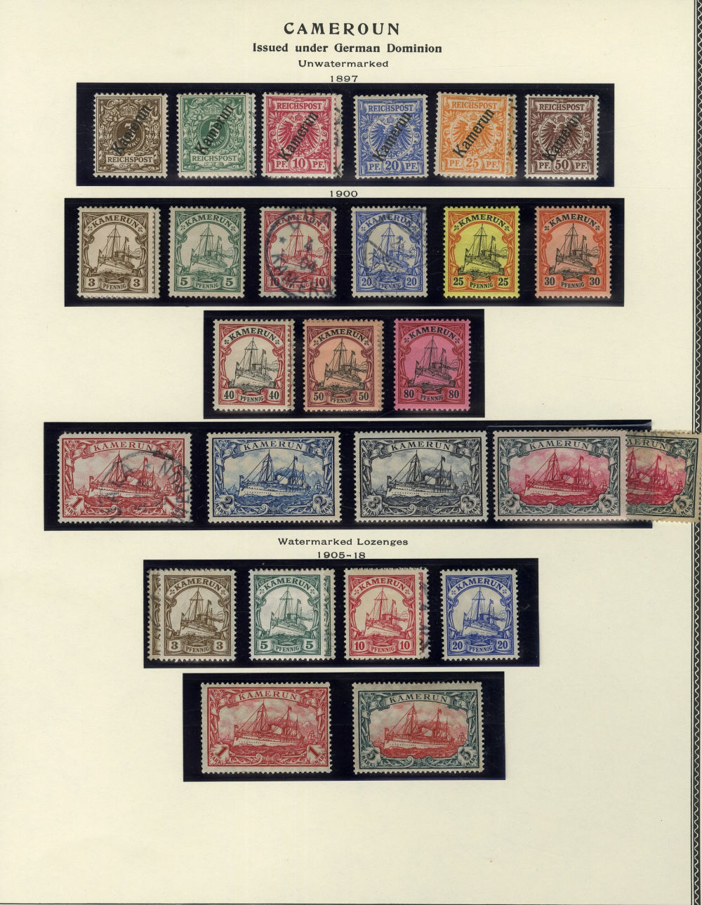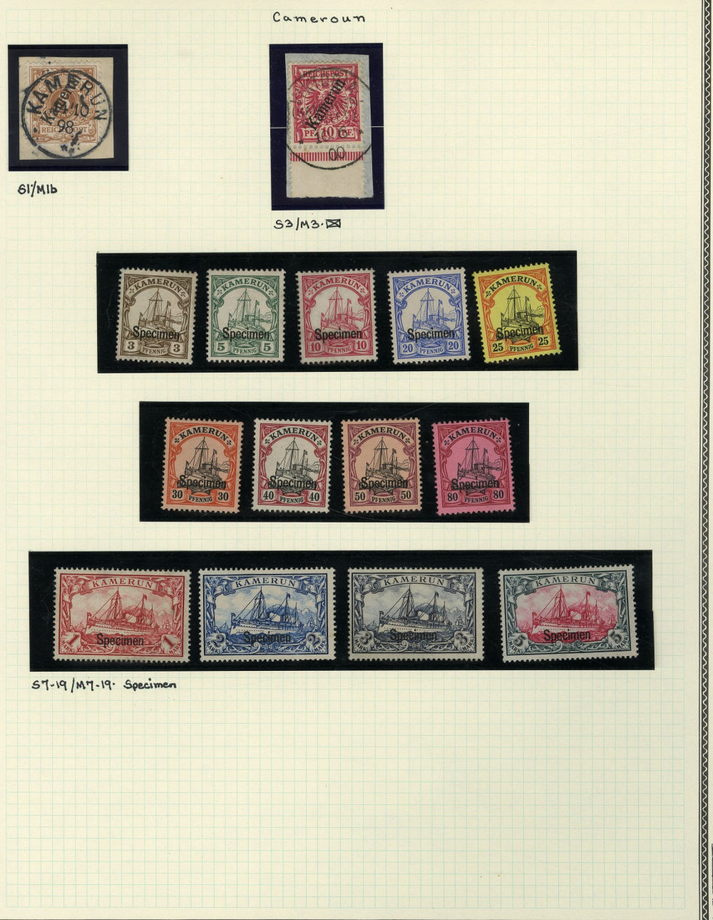 1376 O, og   imageGERMAN COLONIES 1884-1919 German Offices in China, Morocco and the Turkish Empire, plus German Colonies Cameroun-Togo, collection of mostly unused, good showing of forerunners, first issue overprints, surcharges, unwatermarked Yacht series complete to 5m, occasional varieties, "Specimen" overprints (Cameroun 7-19S), some duplication (including high values), British Occupation, German East Africa Schulke & Mayr set of five, selection of "Niemals Vergessen" Lost Colonies mourning labels, mixed condition, occasional flaws noted, mostly fine-v.f. (Image) (Image 2) (Image 3) (Image 4) (Image 5) (Image 6) (Image 7) (Image 8) (Image 9) (Image 10) (Image 11) (Image 12) (Image 13) (Image 14) (Image 15) (Image 16) (Image 17) (Image 18) (Image 19) (Image 20) (Image 21) (Image 22) (Image 23) (Image 24) (Image 25) (Image 26) (Image 27) (Image 28) (Image 29) (Image 30) (Image 31) (Image 32) (Image 33) (Image 34) (Image 35) (Image 36) (Image 37) (Image 38) (Image 39) (Image 40) (Image 41) (Image 42) (Image 43) (Image 44) (Image 45) (Image 46) (Image 47) (Image 48) (Image 49) (Image 50) (All Images)