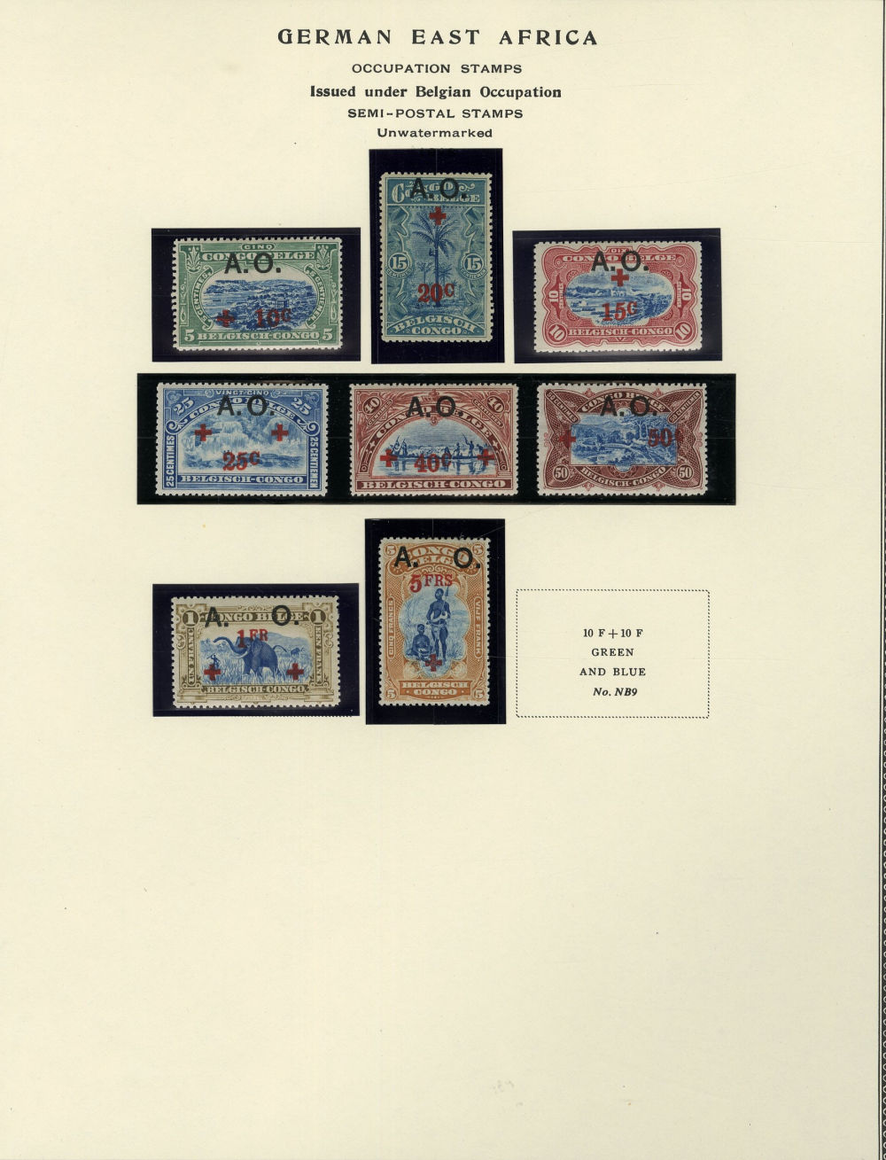 1378 O, og, COVER   imageGERMANY - WORLD WAR II Occupation Issues 1939-1945 A two-volume collection on pages, Albania complete (n.h.), Bohemia & Moravia, used and unused, with some parcel cards and covers, Croatia (B76 reprint), Slovakia, Estonia, France, with St. Nazaire Ship set of two, ILOT stationery, Zante complete set of eight, Laibach and Kotor complete, Kurland, Macedonia, Montenegro, Lithuania, France, Luxembourg, German Occupation of Poland, with souvenir sheetlets of eight and larger, also covers, earlier locals, etc. There are issues from Russia (Pleskau), Serbia complete, with perf. and imperf. souvenir sheets, Air Post, some varieties. There is also Ukraine, Sudetenland, Zara, plus also some older issues, Belgian WWI Occupation, Alsace Lorraine, etc., mixed condition, some reference material (identified as such), excellent introduction to this popular collecting area