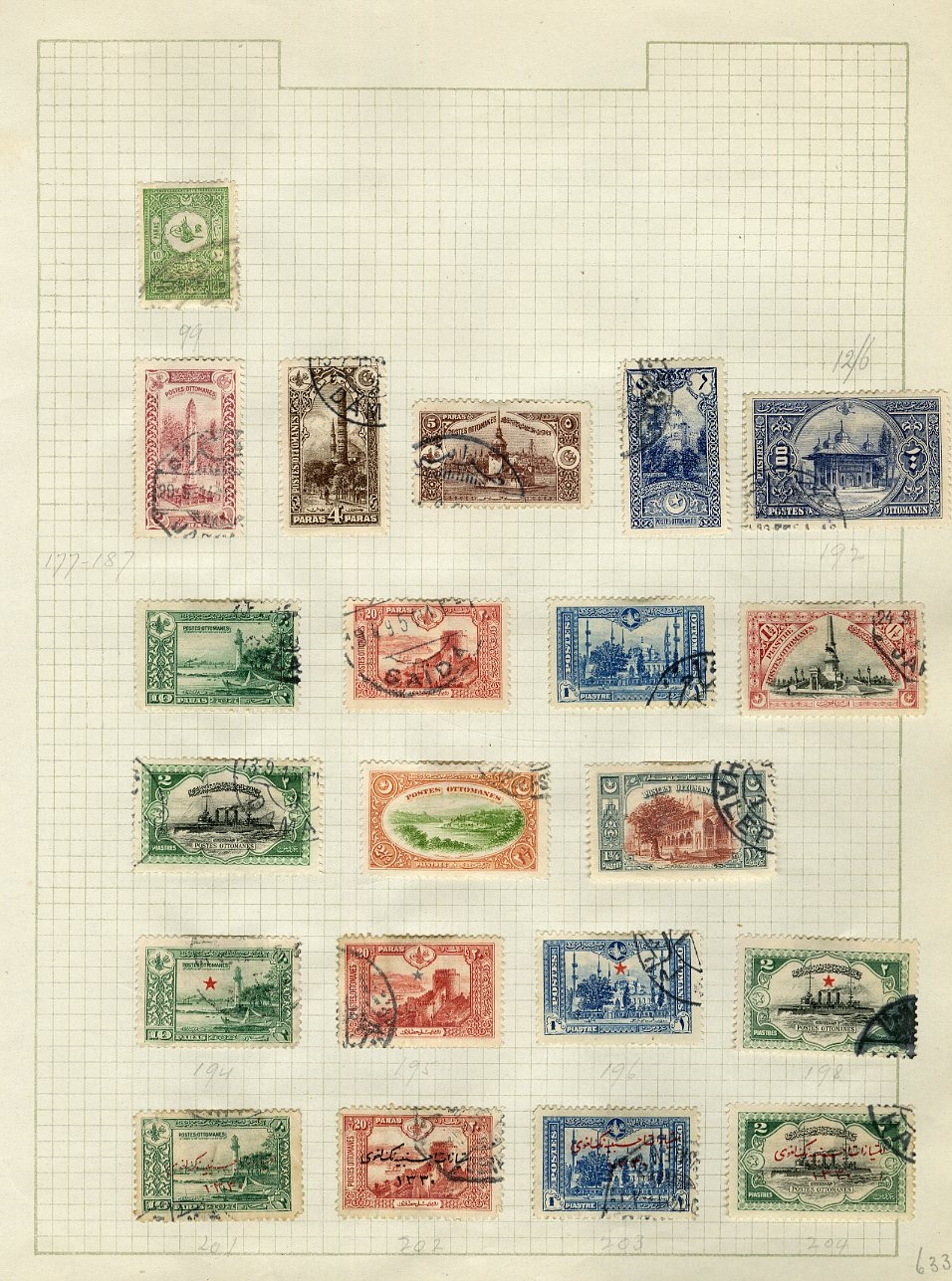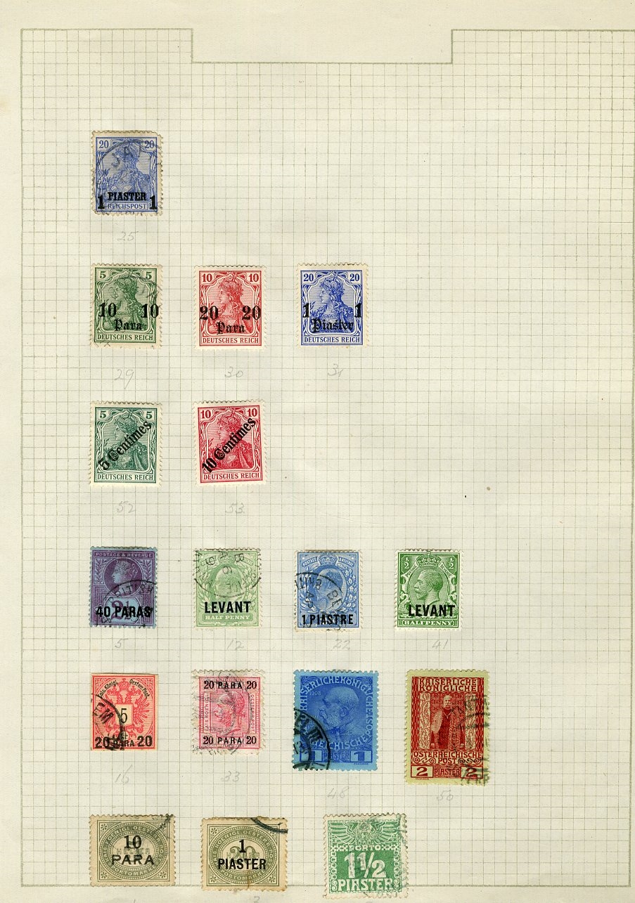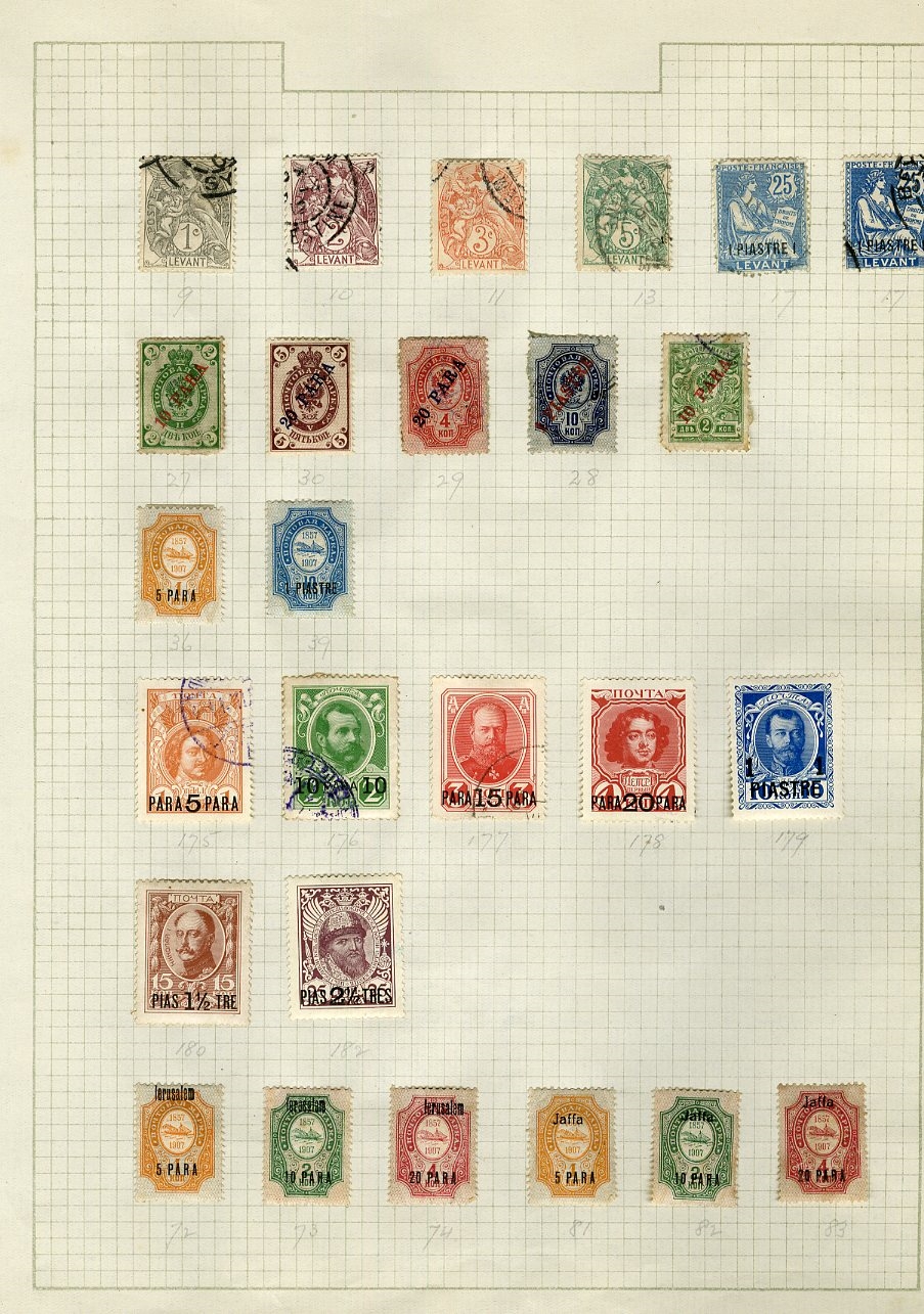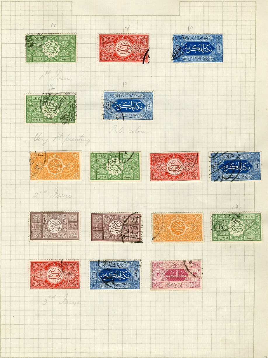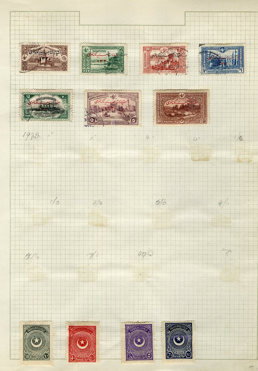 1406 O, og   imageMIDDLE EAST 1920-22 collection on album leaves, used and unused singles and sets, Saudi Arabia Hejaz 1921-22 issues with better values, noted 1921 1pi on 1pa used, 1922 1pi on 1pa with words of surcharge transposed and right hand character of surcharge inverted varieties, Syria T.E.O. overprint on France, 4m, 5m, 1p, 2p and 4p values, on the Levant values including the scarce 20p on 5f, 1920-21 Rosette overprint in black 25c on 1c-25p on 50c and in red 5c on 1c to 25p on 50c, etc. Arab Kingdom handstamps on two pages, Cilicia overprints on three pages, Turkey range, noted 1914 Abolition set 10p unused and others, mixed condition, some some stuck down (Image) (Image 2) (Image 3) (Image 4) (Image 5) (Image 6) (Image 7) (Image 8) (Image 9) (Image 10) (Image 11) (Image 12) (Image 13) (Image 14) (Image 15) (Image 16) (Image 17) (Image 18) (Image 19) (Image 20) (Image 21) (All Images)