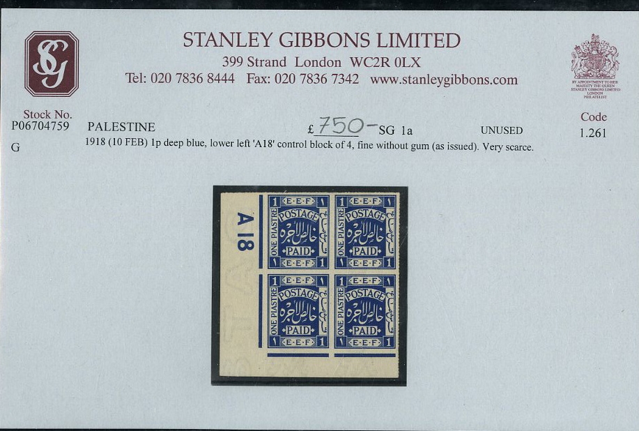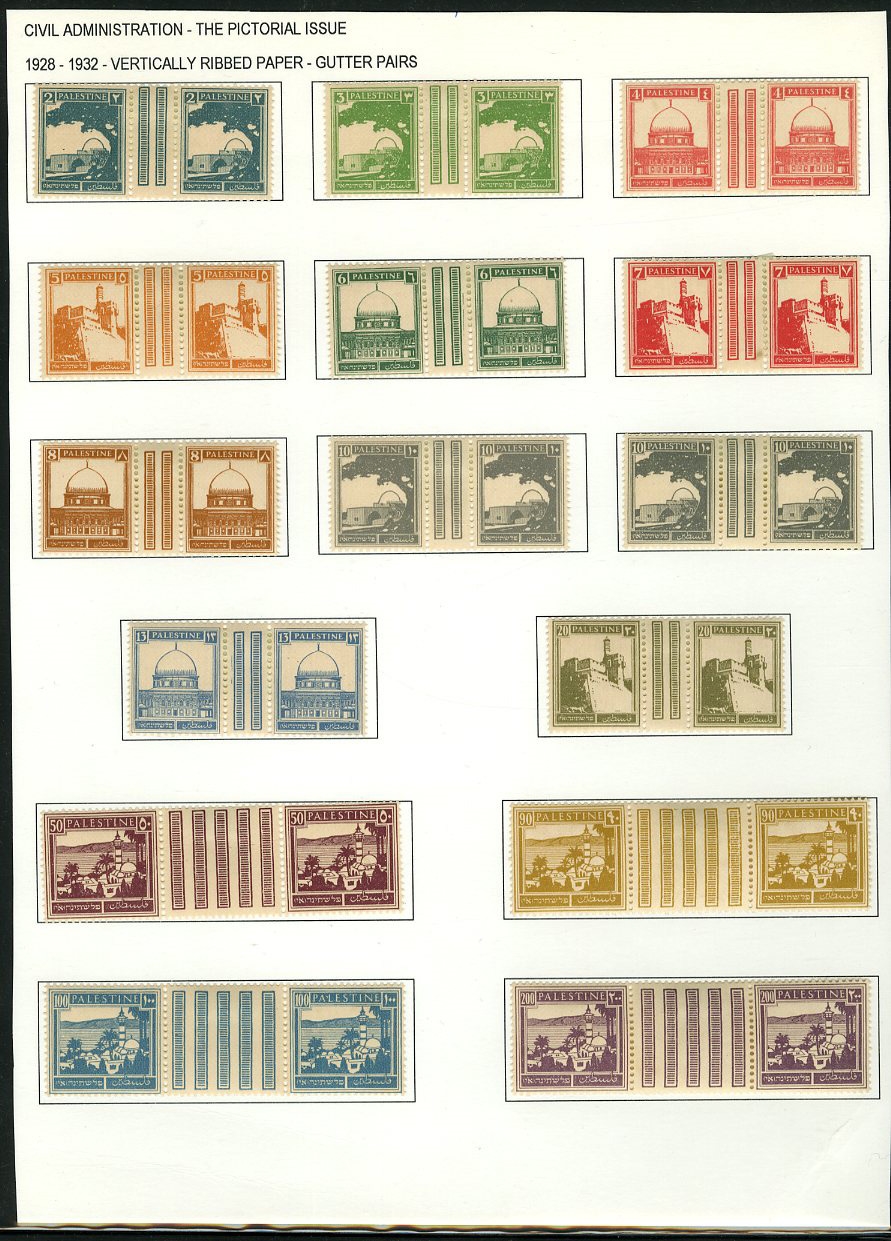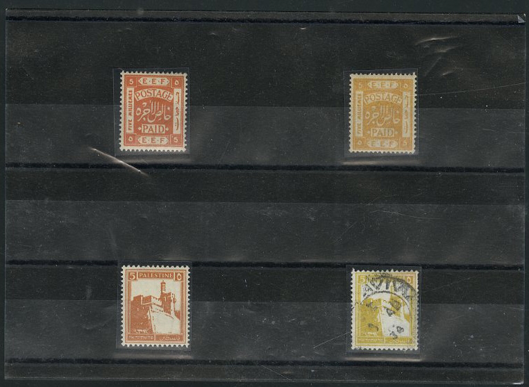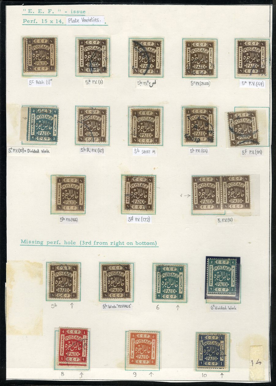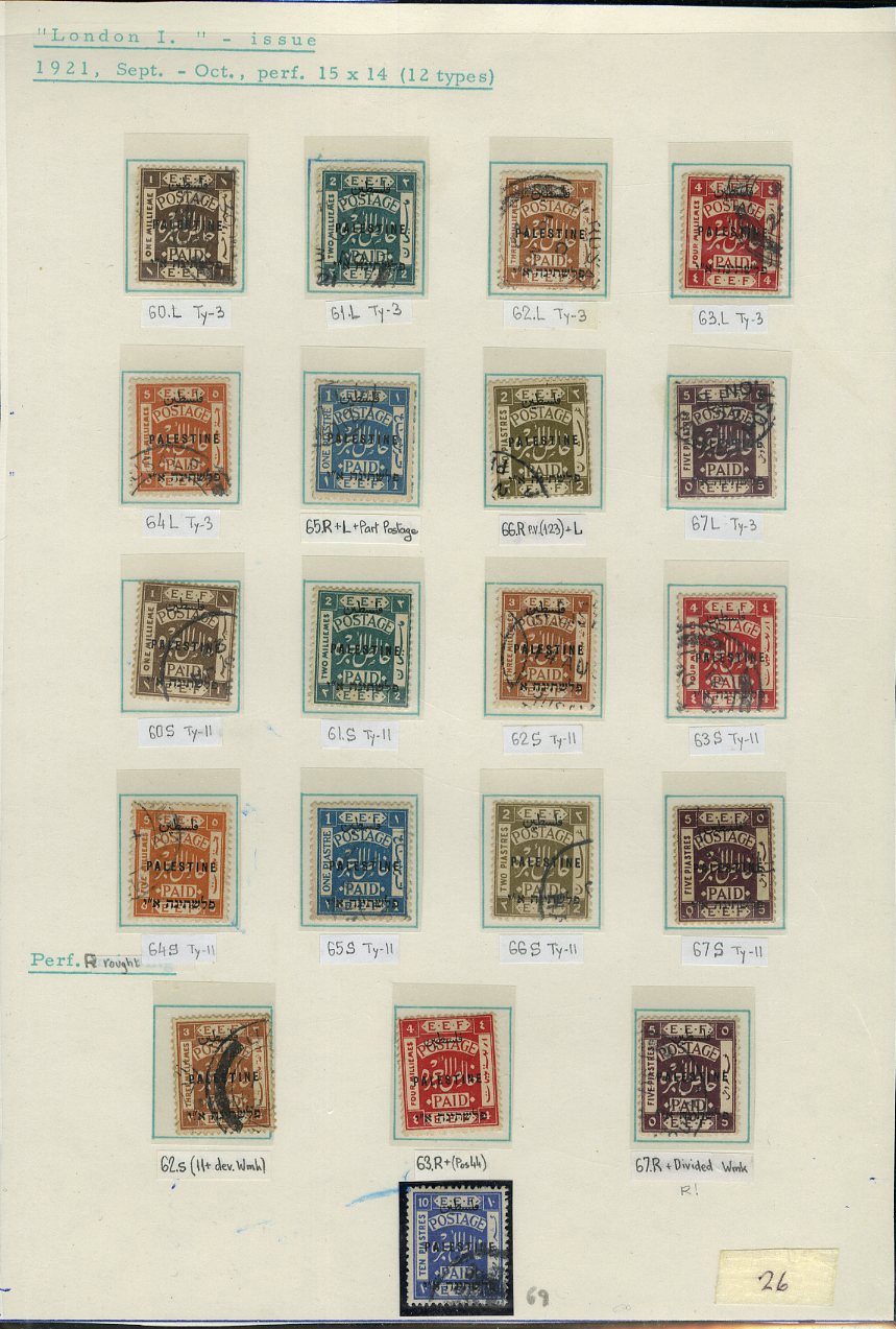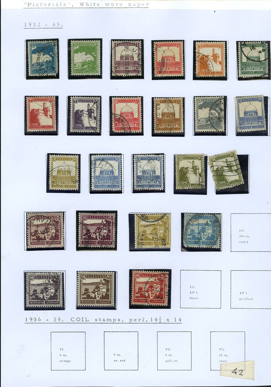 1414 og   imagePALESTINE 1918-45 specialized collection neatly organized on pages, fairly complete, better early items include 1918 1pi deep blue, control block of four, 5m on 1pi cobalt blue (with Muentz certificate), multiple E.E.F., Jerusalem issues and London Issues, with shades and varieties noted (including plate varieties, perforations, etc.), some multiples including 1927-42 issue in gutter pairs, Postage Dues including 1923 1m, 2m and 8m imperf. proof pairs, mostly hinged (some unused and used noted), small flaws possible, generally fine-v.f., an ideal lot for a specialist (Image) (Image 2) (Image 3) (Image 4) (Image 5) (Image 6) (Image 7) (Image 8) (Image 9) (Image 10) (Image 11) (Image 12) (Image 13) (Image 14) (Image 15) (Image 16) (Image 17) (Image 18) (Image 19) (Image 20) (Image 21) (Image 22) (Image 23) (Image 24) (Image 25) (Image 26) (Image 27) (Image 28) (Image 29) (Image 30) (Image 31) (Image 32) (Image 33) (Image 34) (Image 35) (All Images)